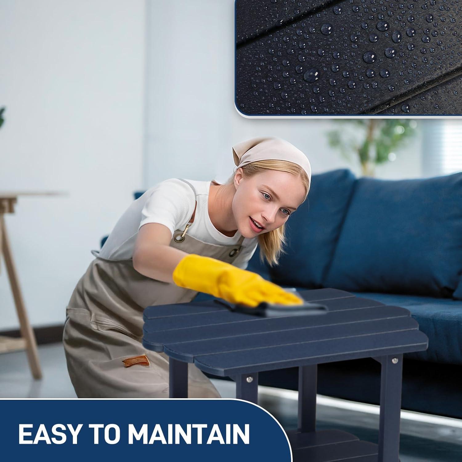 【VARIOUS APPLICATIONS】The outside coffee tables are delicated simple exterior design and smooth finishes, it is the perfect companion to any Adirondack chair. The plastic patio side table is perfect for all scenes like garden, yard, patio, balcony, front proch, poolside as well as indoor use