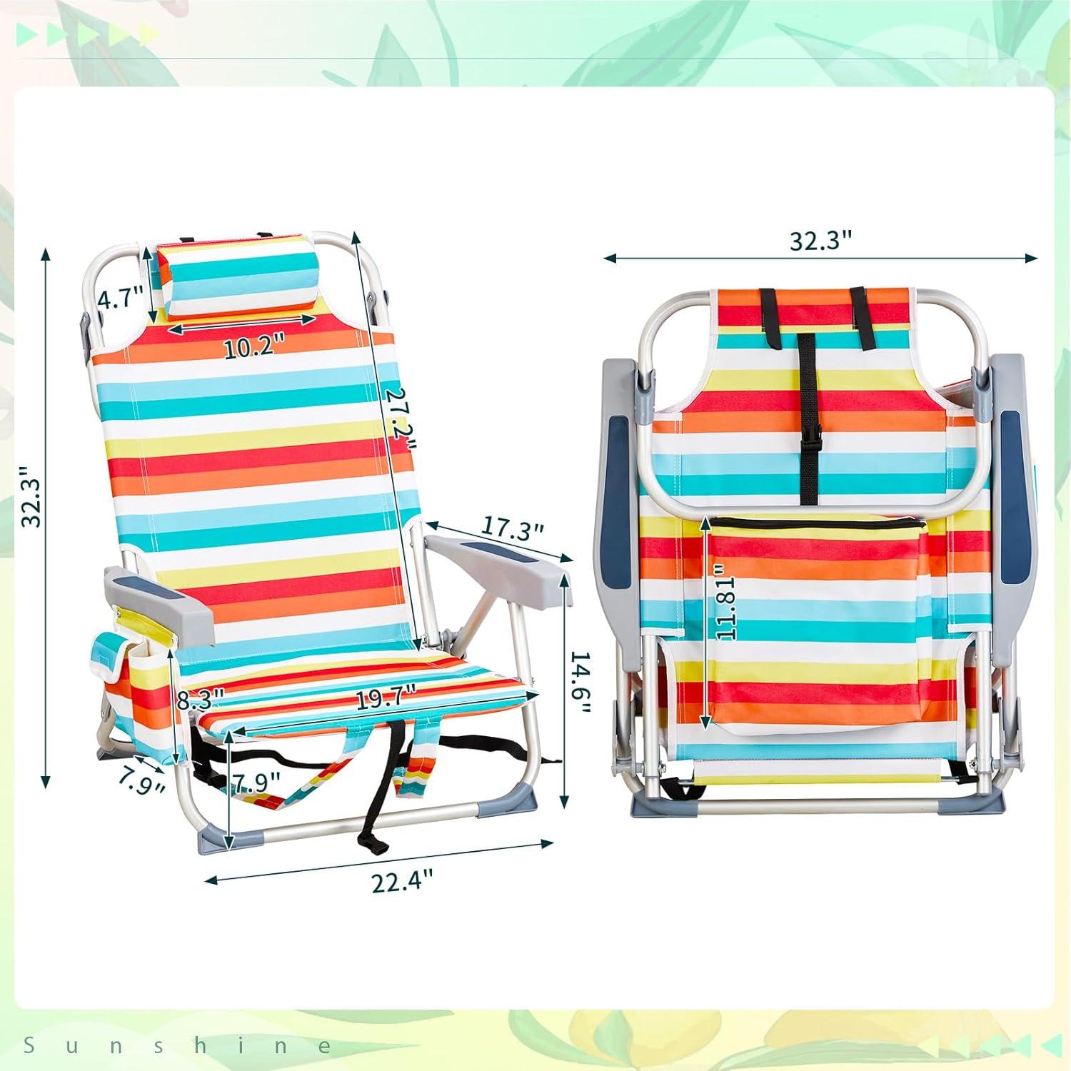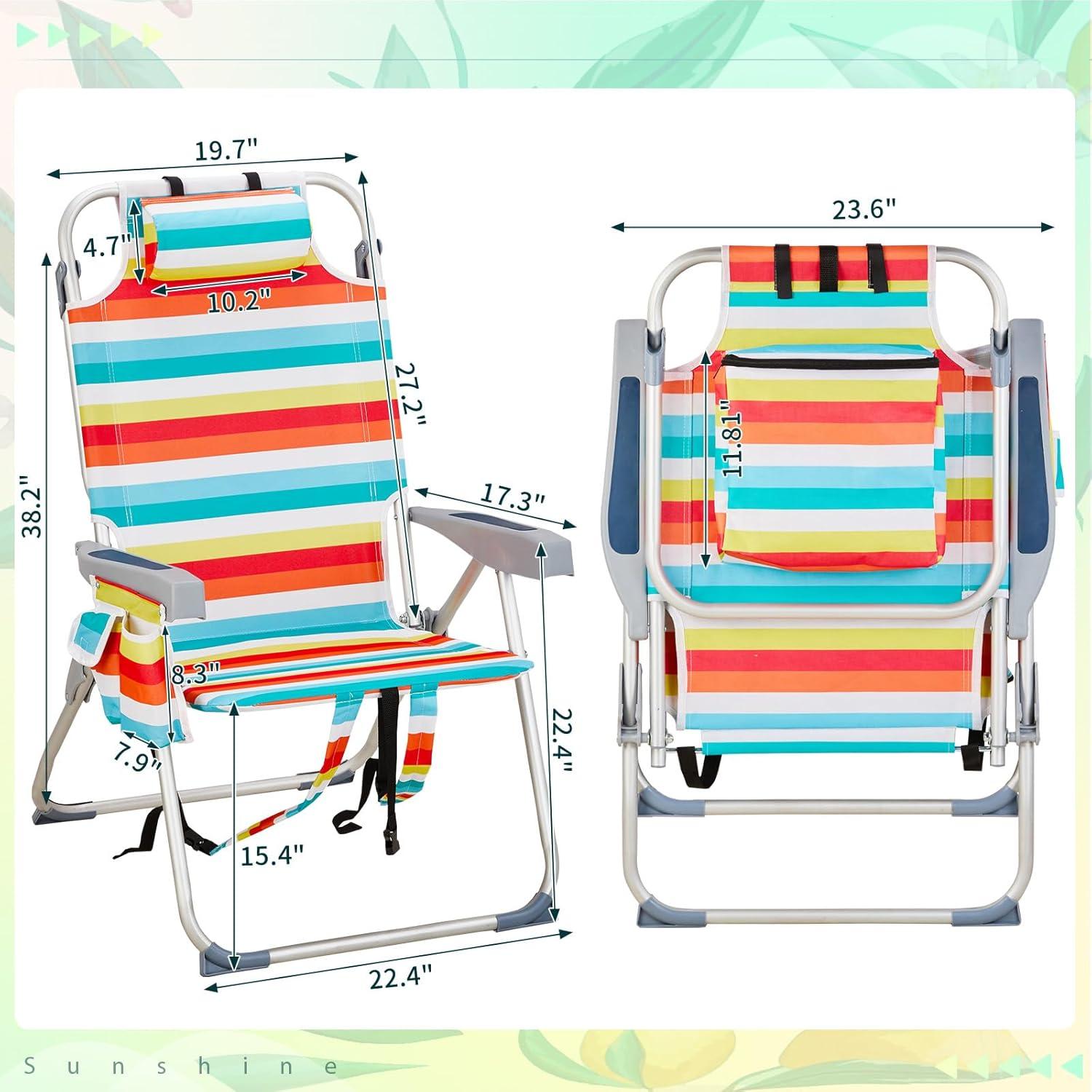 【EASY TO CARRY】It's lightweight but sturdy enough. Total weight is 8.4lbs. Nylon handle strap and backpack strap allows to take out this beach chair easily with ease. You can free up your hands to carry more things or take care of kids