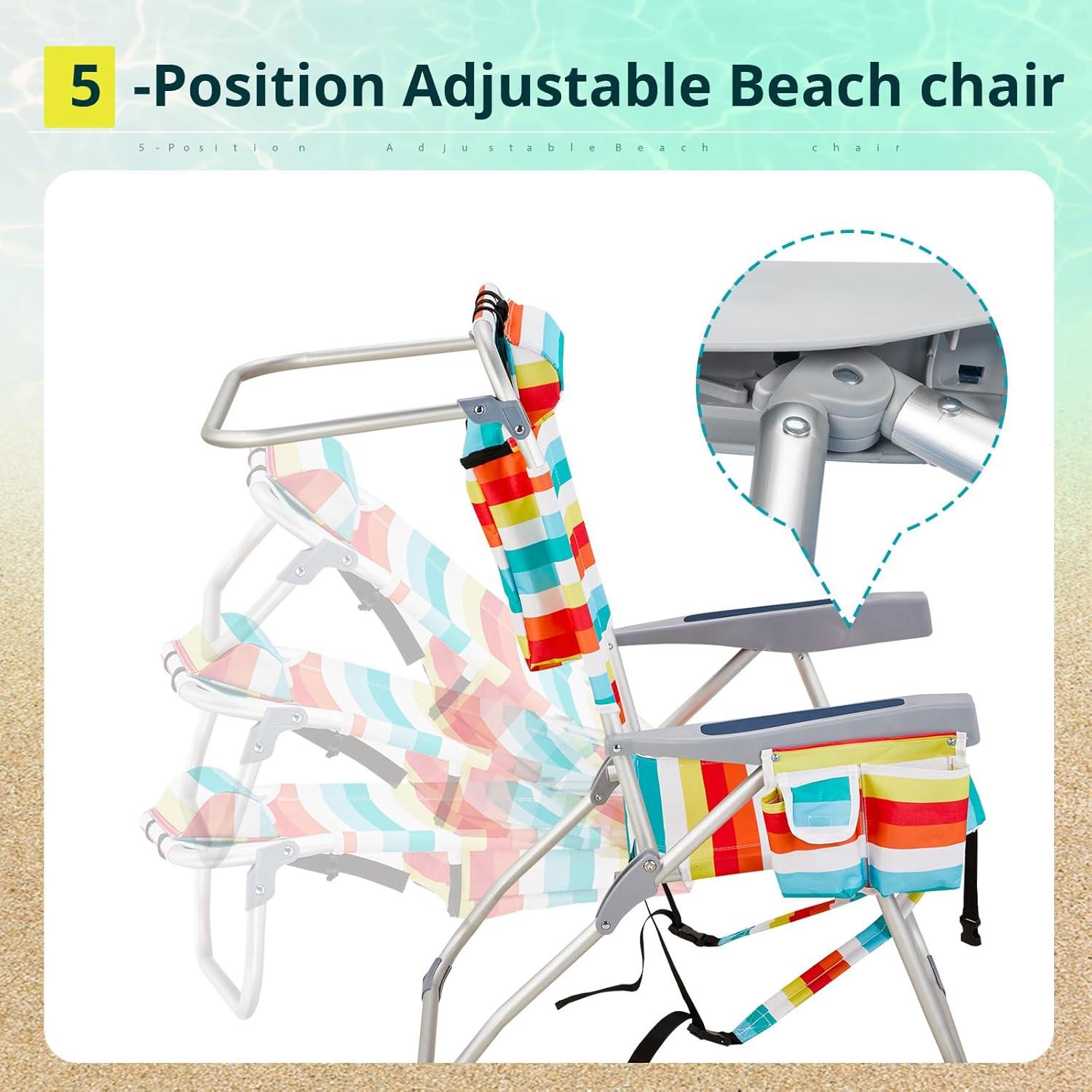 【FUNTIONAL CHAIR】Our upgrade beach chair has 5 gears adjustable position.Meet different demands to sit or lie on the chair. A good chair for relax. After folding, the size is 24.8″X36.2″. It can save space in your car or garage