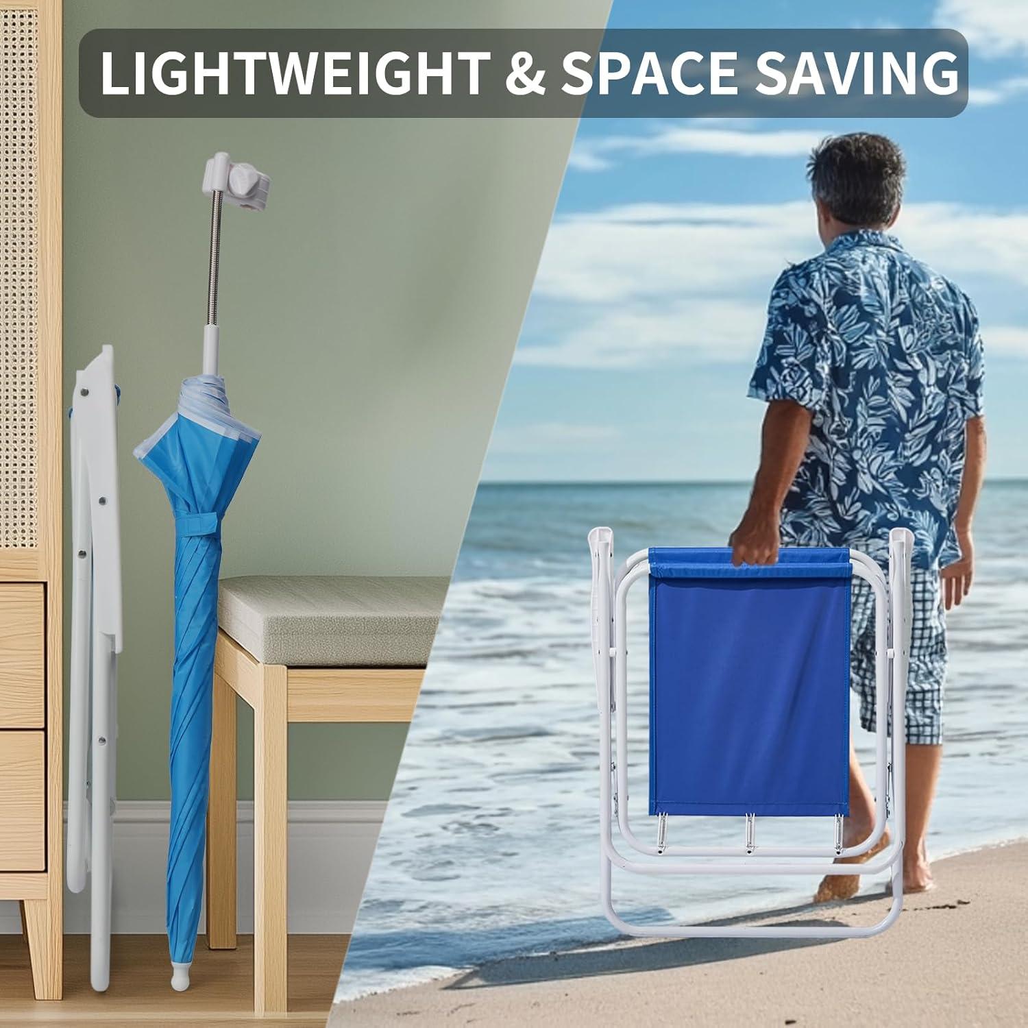 Outvita Beach Chair with Umbrella, Outdoor Folding Chair High Strength Cleanable Fabric Lightweight and Waterproof for Sand Camping Lawn Concert Travel Festival Blue,Heavy Duty Supports 220lbs(Blue)