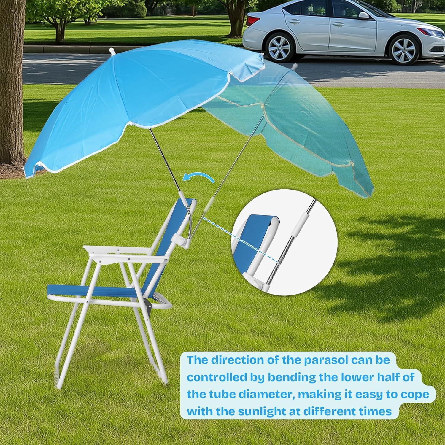 【ADJUSTABLE PARASOL】 The base clip of the parasol can be clamped at different heights of the backrest frame through the knob to adapt to different heights. The direction of the parasol can be controlled by bending the lower half of the tube diameter, making it easy to cope with the sunlight at different times