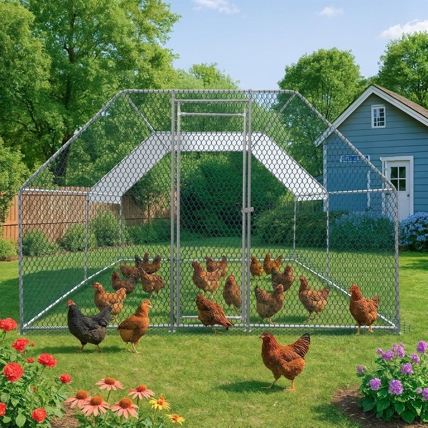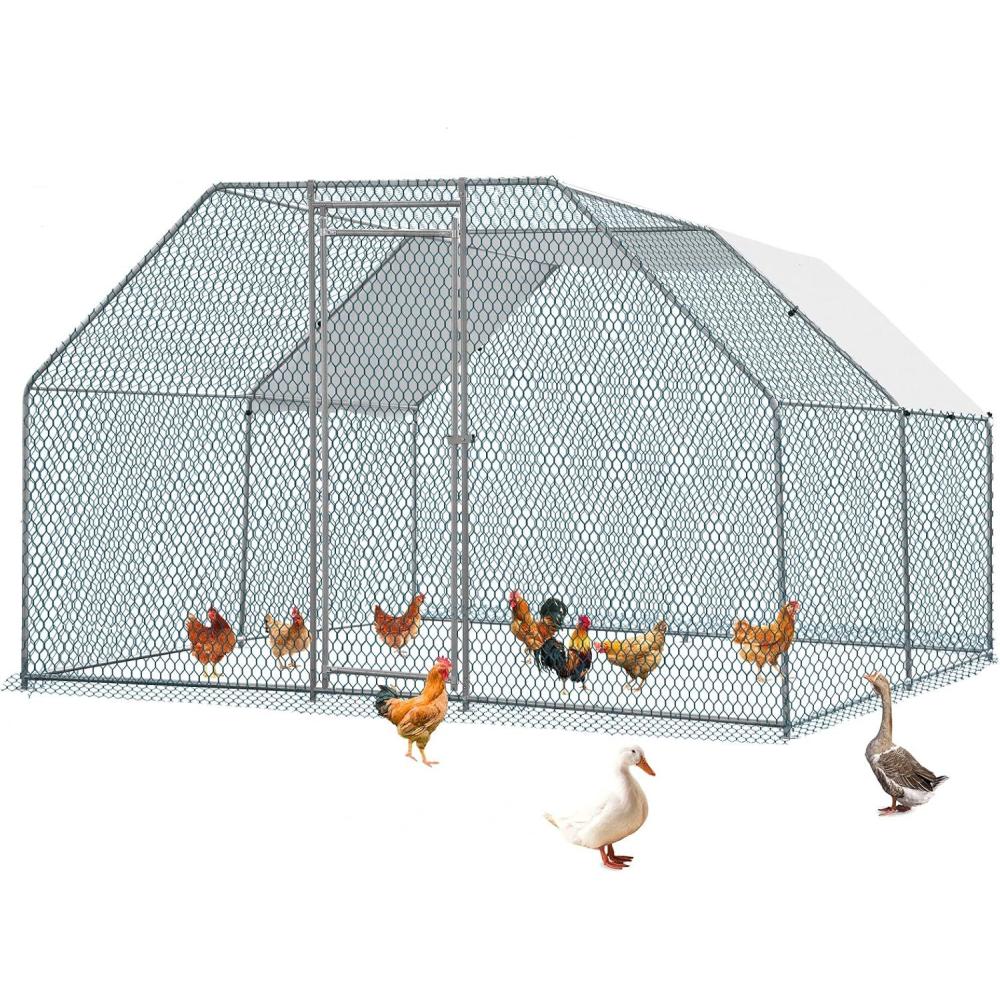 Outvita Chicken Coop, 6.5 x 10 FT Large Metal Chicken House, Poultry Habitat Cage with Waterproof Cover, Walk-in Chicken Run Pen for Small Animals Yard Farm Patio(13×10 FT)