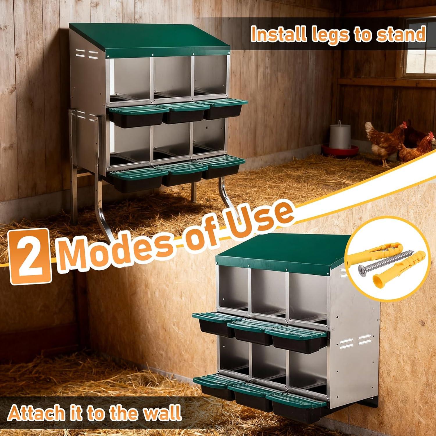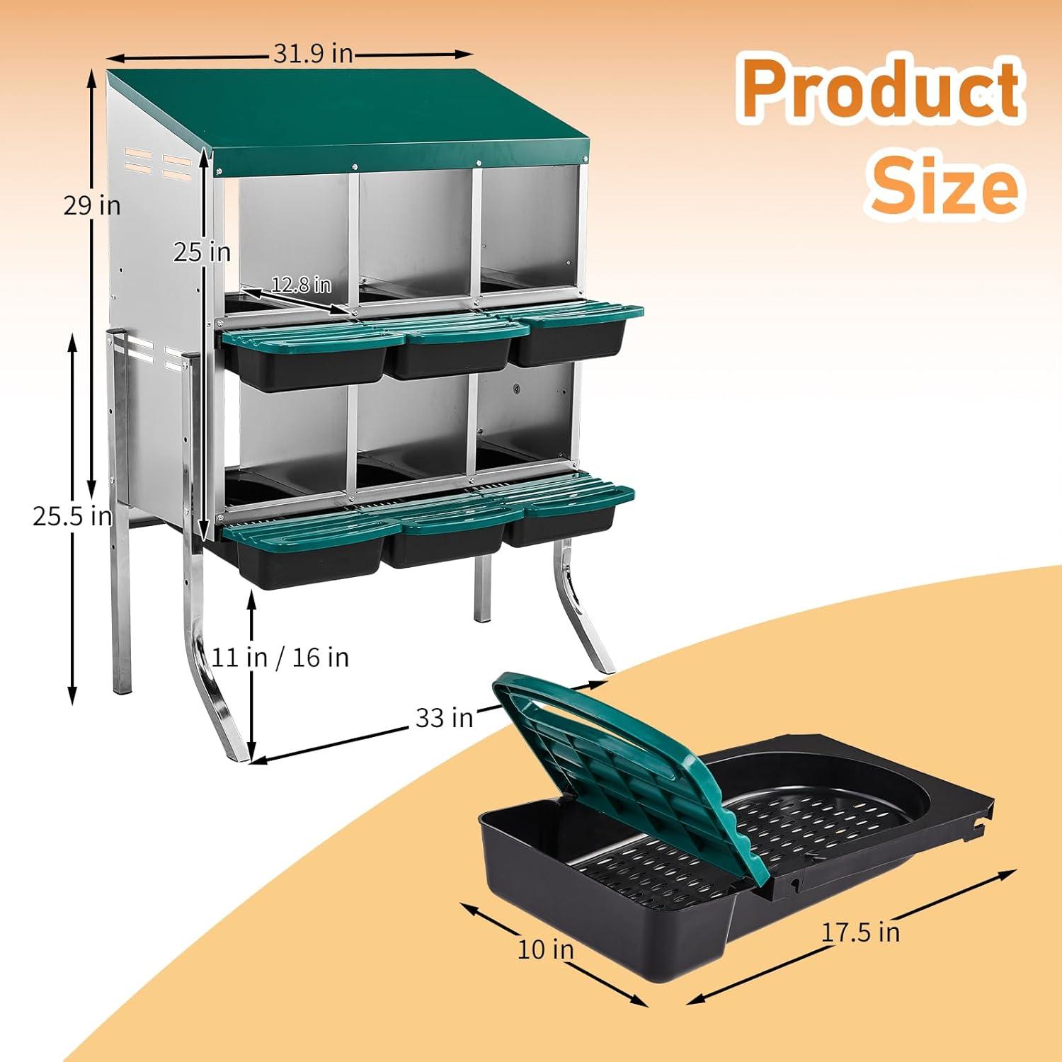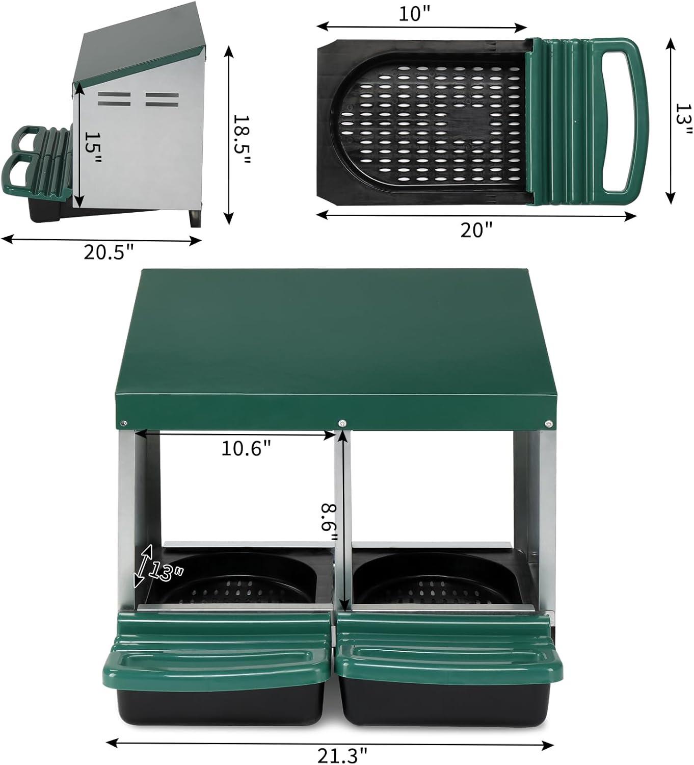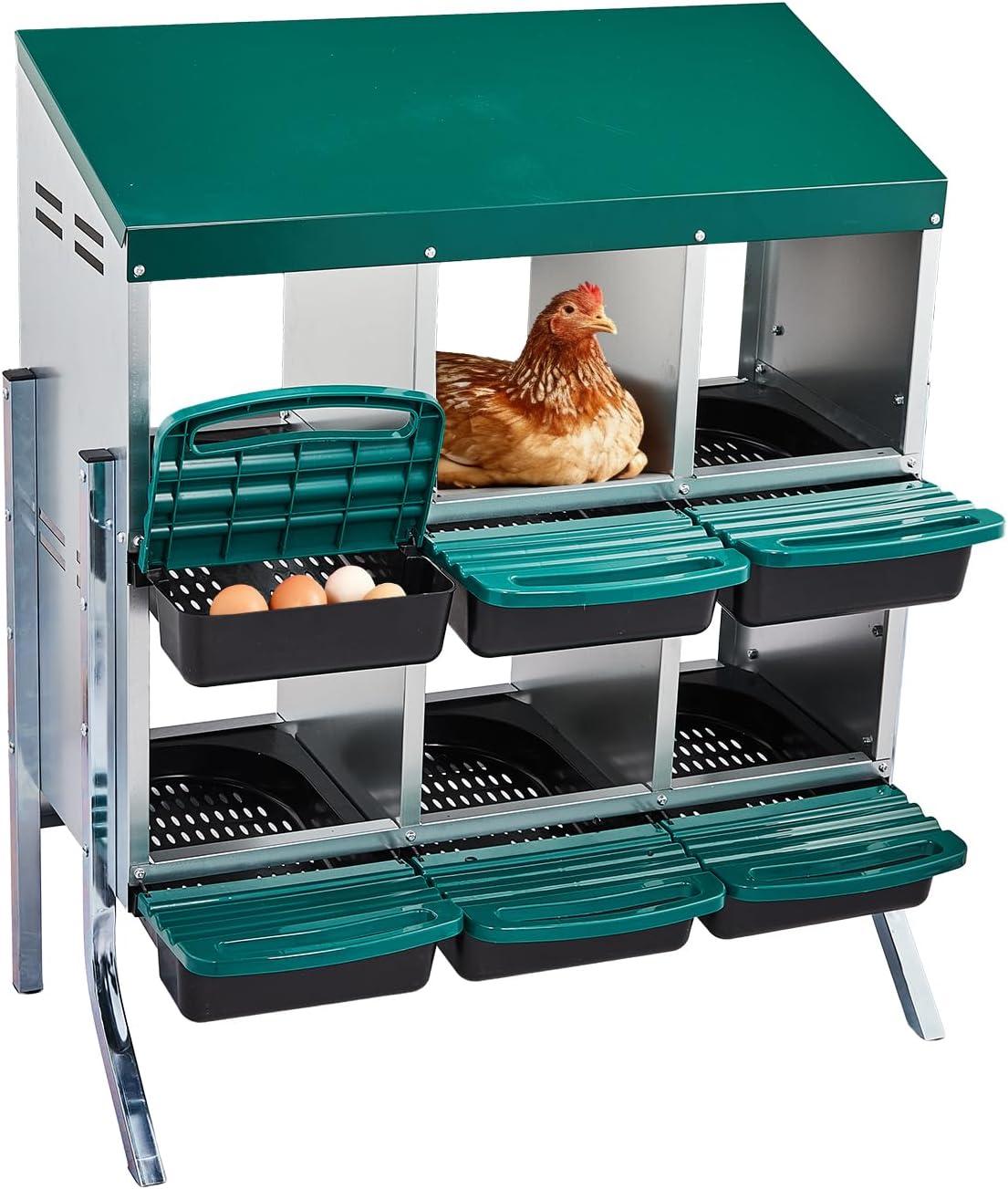 【Premium Quality】:Crafted with high-grade galvanized steel and plastic components, our nesting boxes for chickens are built to deliver long-lasting performance. This chicken nesting box boasts excellent resistance to harsh outdoor weather, rust, and wear, ensuring reliable use even in challenging farm or backyard conditions. The sturdy structural design guarantees stability, providing a secure nesting space for your hens for years to come.