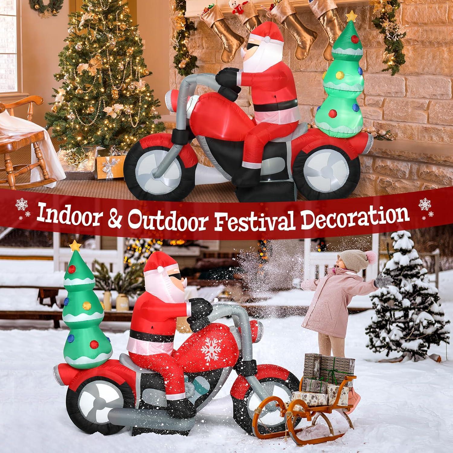 Create Christmas Atmosphere: Santa Claus looks funny while riding a motorcycle wearing sunglasses. It creates a relaxed and happy atmosphere. The Christmas inflatables featuring 7 LED lights inside make your garden stand out and adds a Christmassy feel to your garden at night