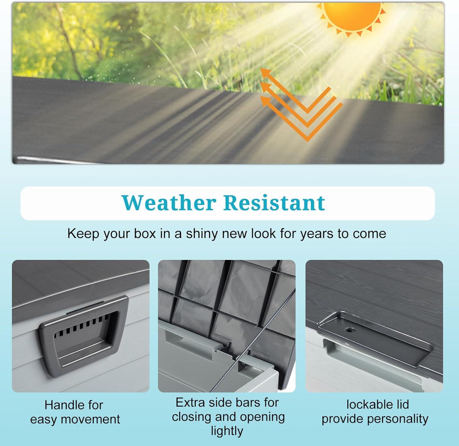 Outvita Deck Storage Box, 75 Gallon Plastic Durable Storage Container Bin with Lid Store Patio Cushions and Yard Stools Outdoor Patio Garden Pool(Brown)(Gray Body-Black Lid)