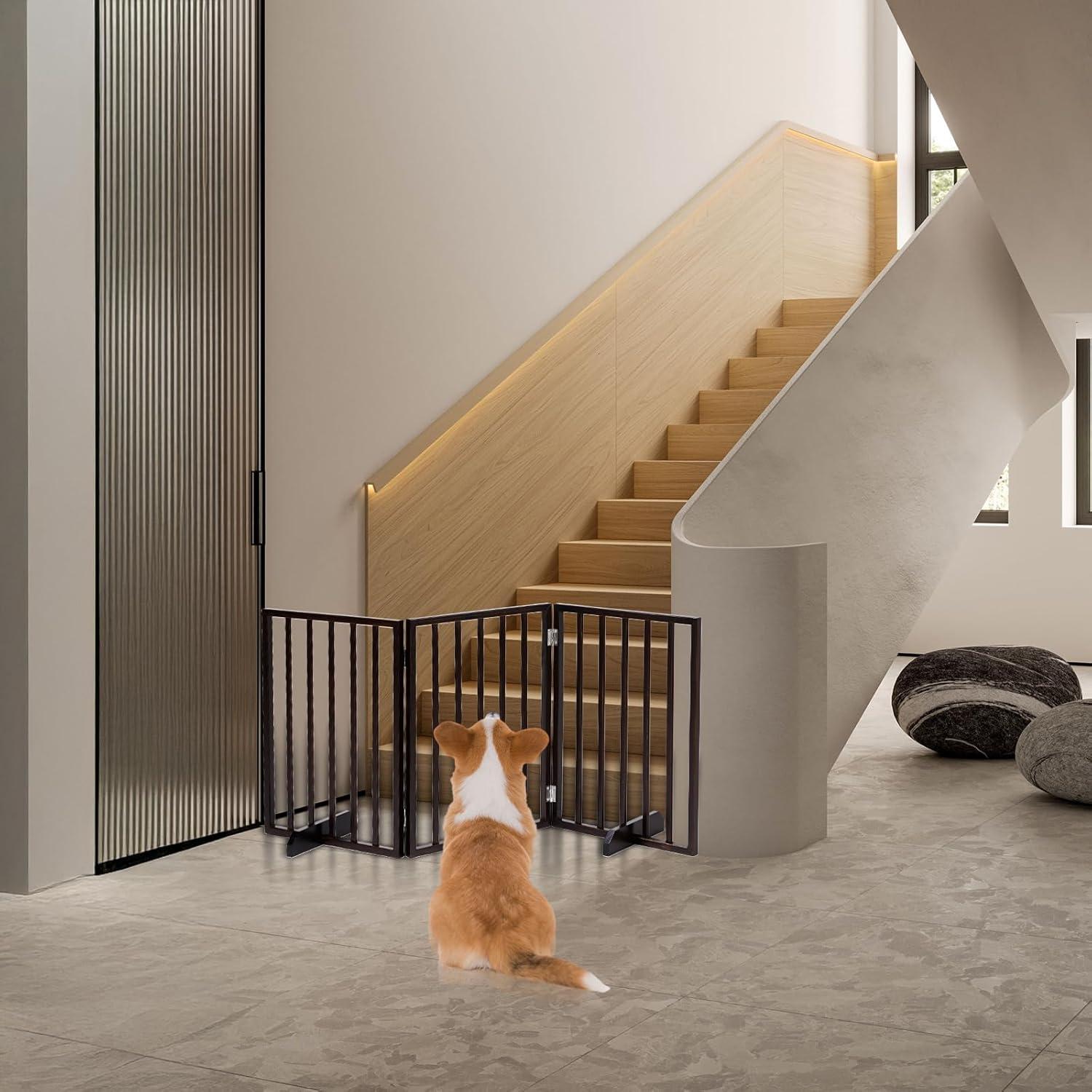 【Convenient Walk-Over Height】: The optimal vertical design effectively contains small breeds while allowing adults to step over the barrier effortlessly, removing the need to constantly move or open the gate during your daily routine.