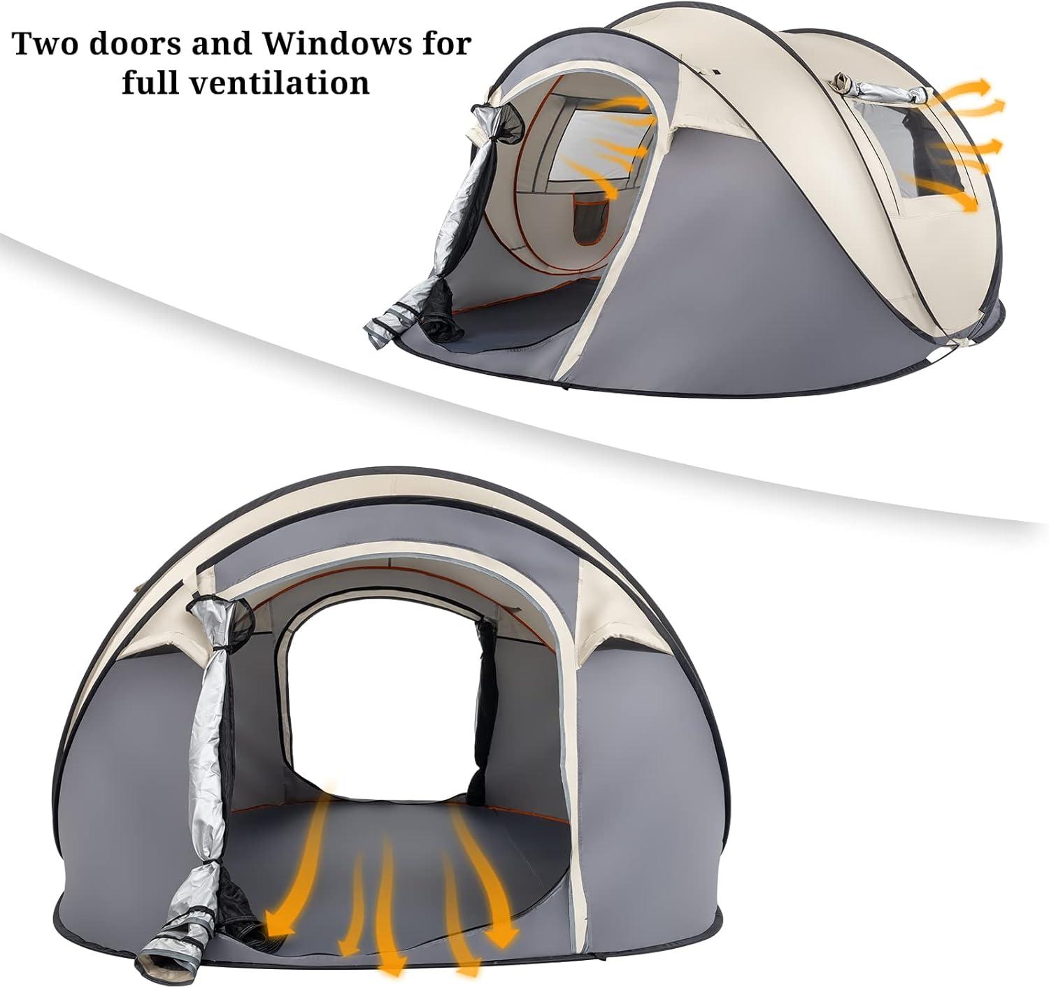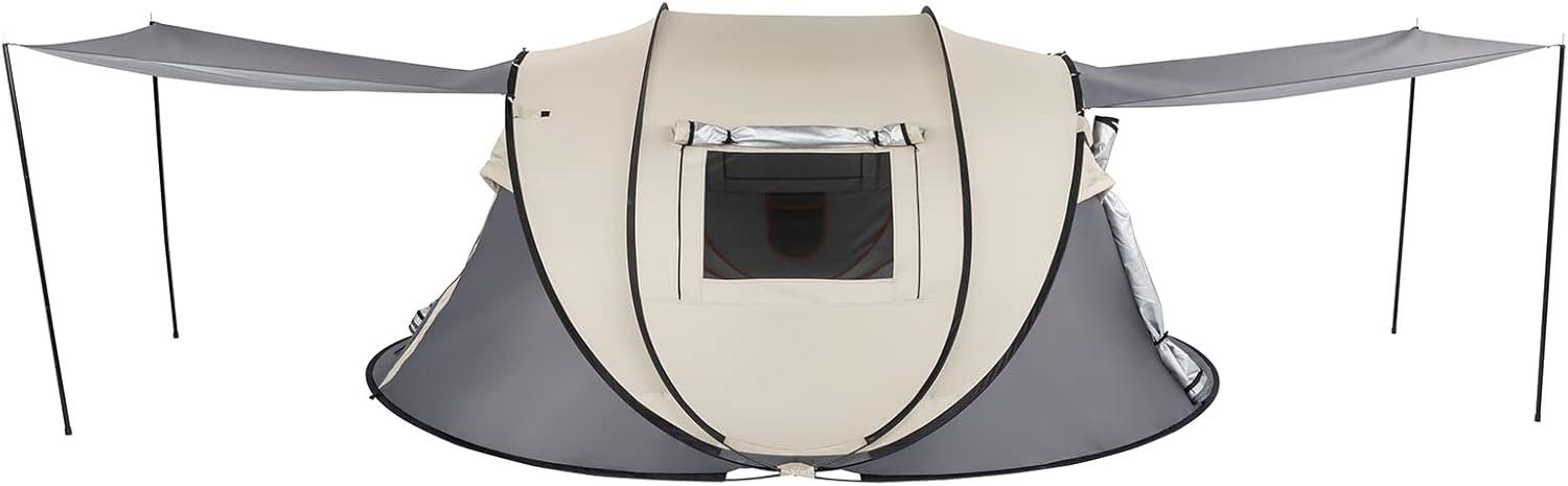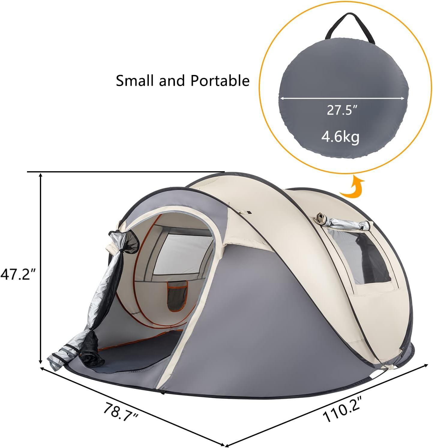 【SETS UP IN SECONDS】The family camping tent with pre-assembled poles can be set up in seconds. Just throw it into the air, pops open in the blink of an eye into a ready-to-use tent. Never again struggling with setting up your automatic tents. Perfect beach camping tent for beginners campers. If you have trouble putting up this tent, please freely contact us to have the video