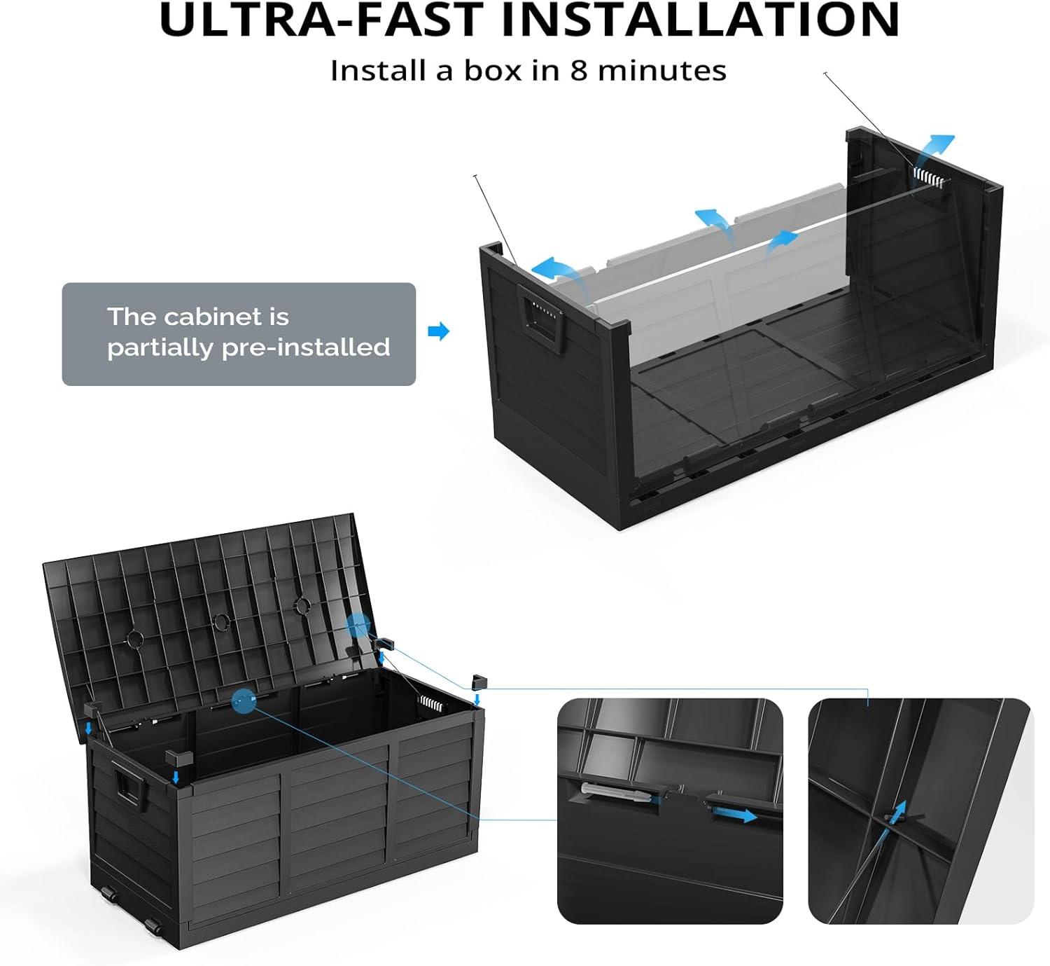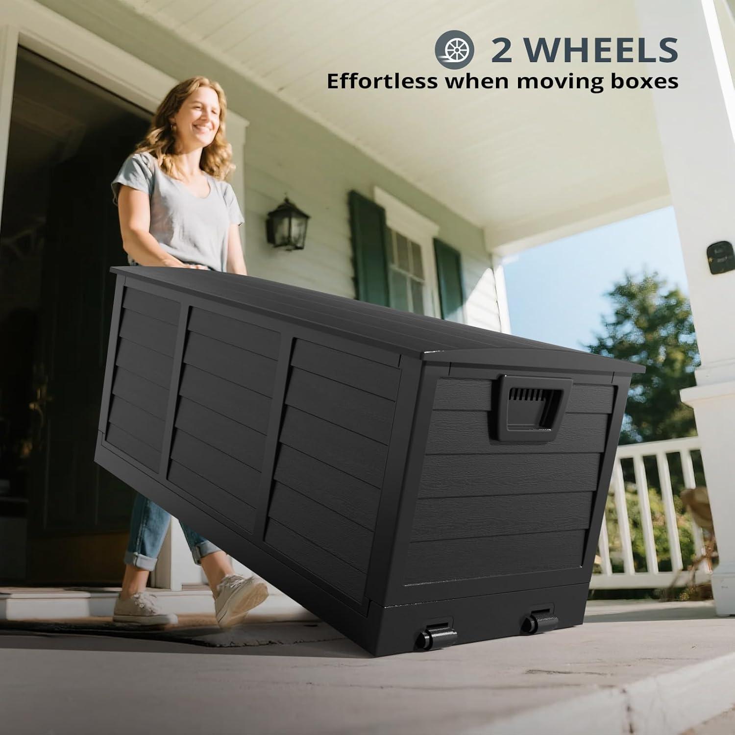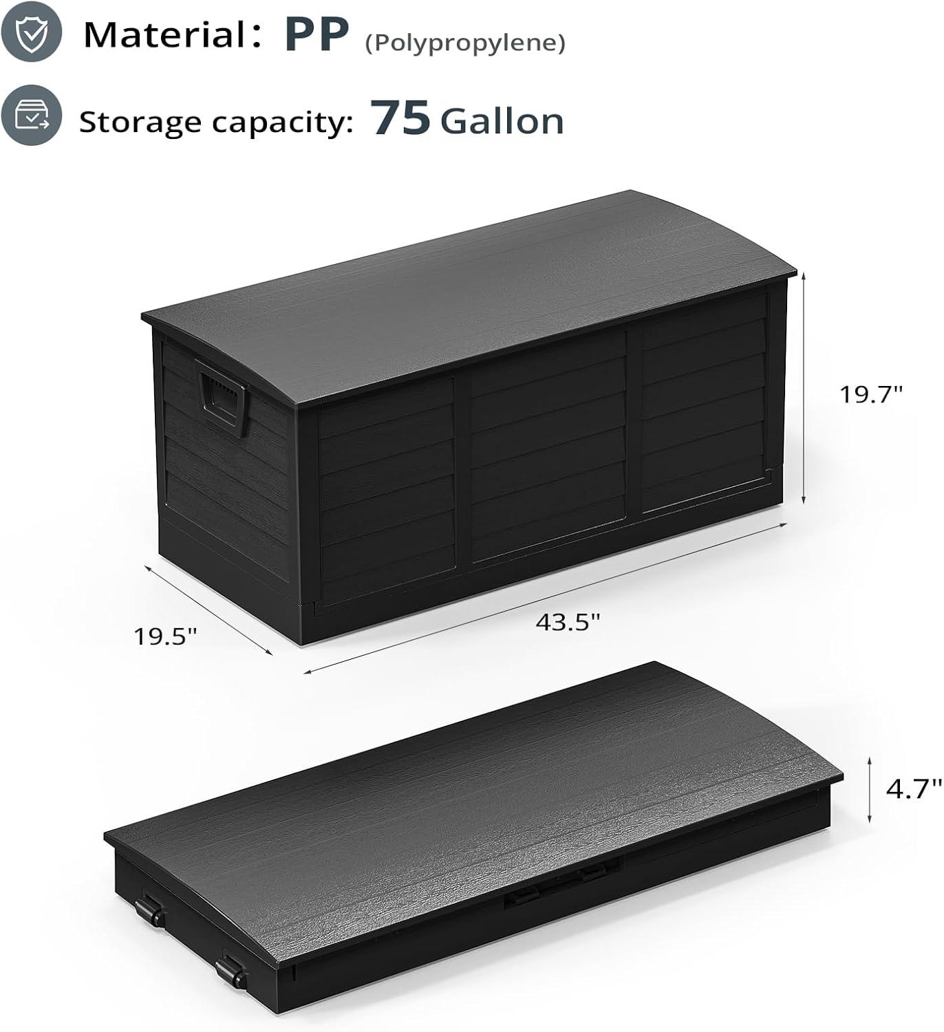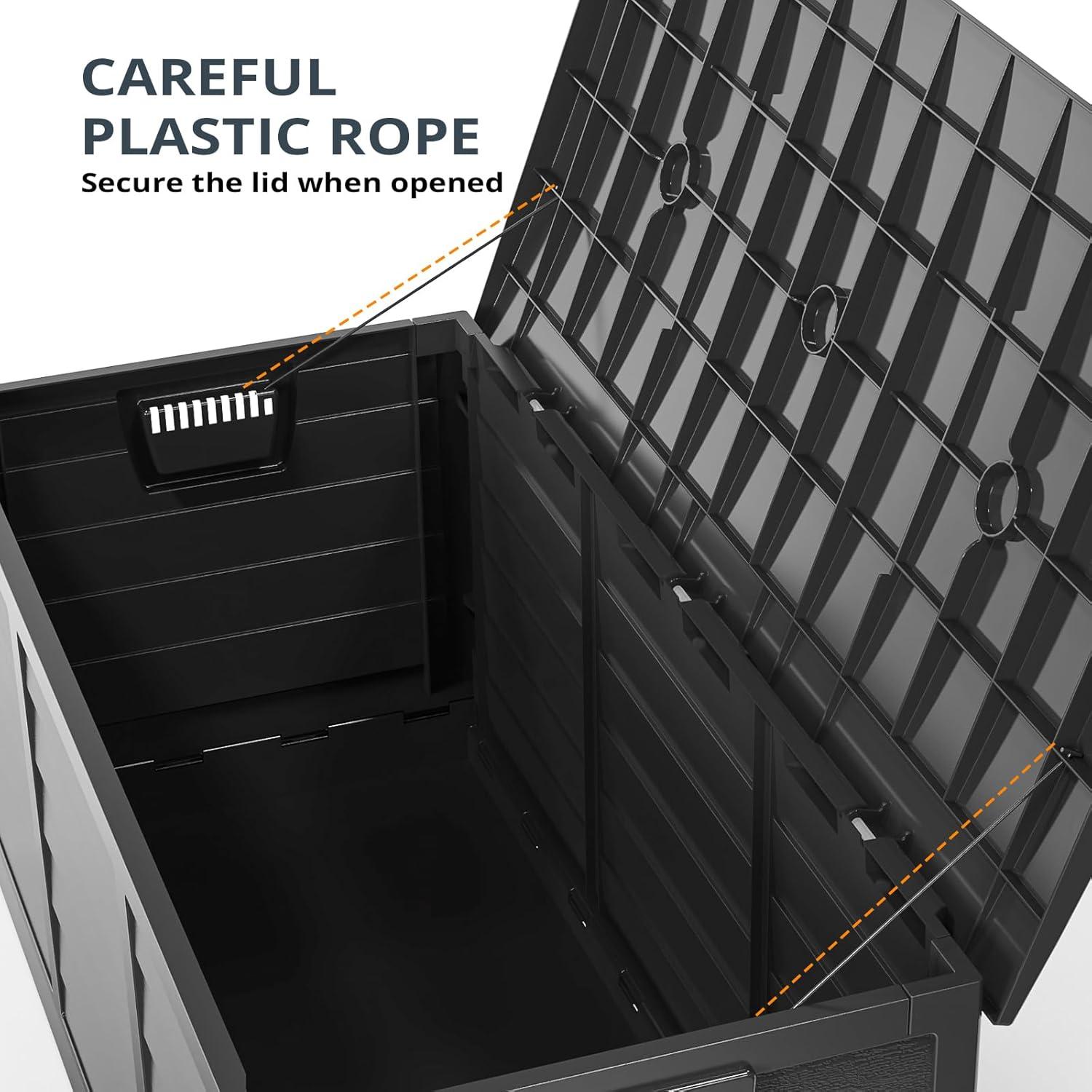 Capacious Storage – Dive into a spacious 75-gallon capacity that effortlessly accommodates your pool equipment, garden tools, and more. This robust storage box with a lid ensures your outdoor essentials are protected and neatly organized