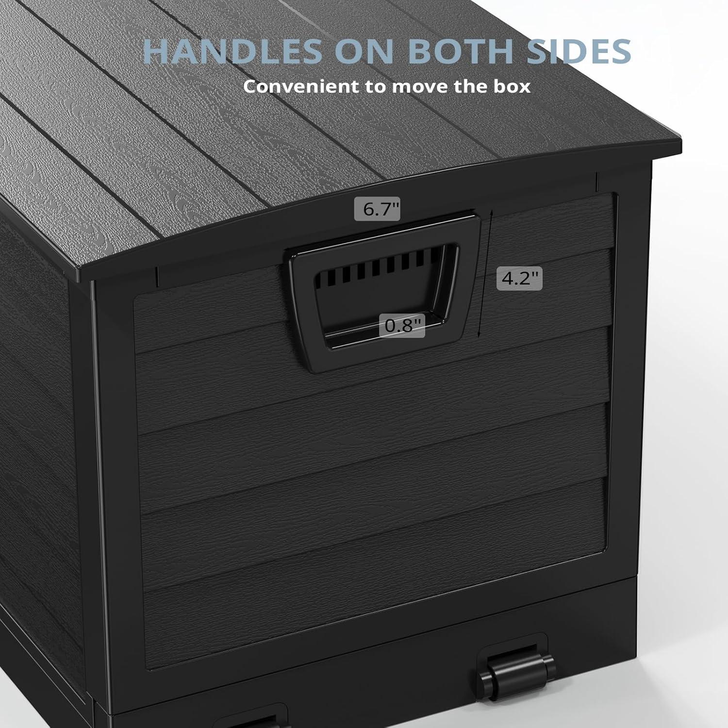 Convenient Design – It can save space when not in use. Our deck storage box features built-in handles on both sides for easy lifting and mobility. This patio storage box doubles as an indoor laundry organizer and an outdoor yard storage unit