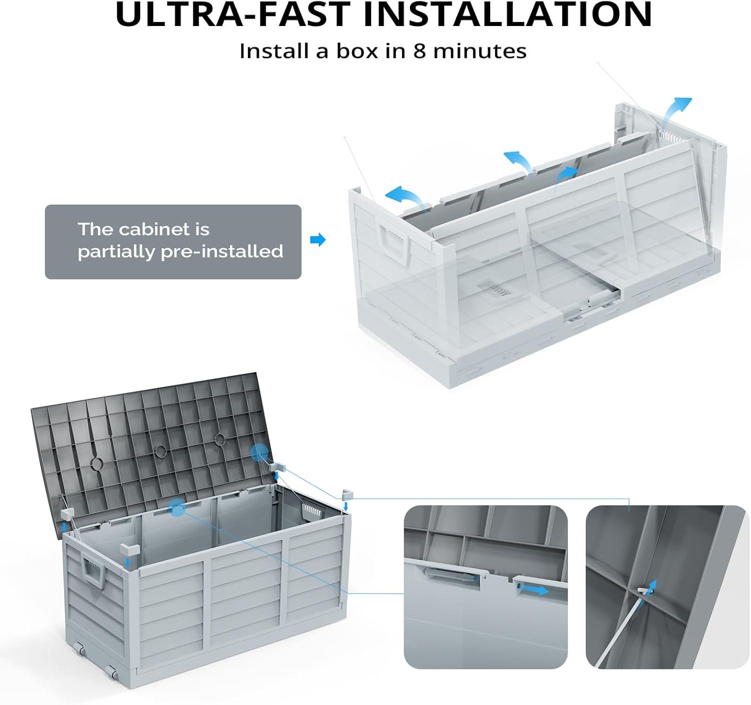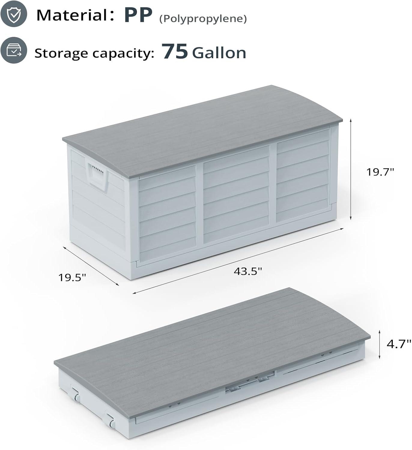 Outvita Foldable 75 Gallon Outdoor Storage Box, Plastic Storage Containers with Lid, Patio Deck Box Furniture for Garden, Pool, Balcony, Yard (Gray Body-Black Lid)(Gray Body-Gray Lid)