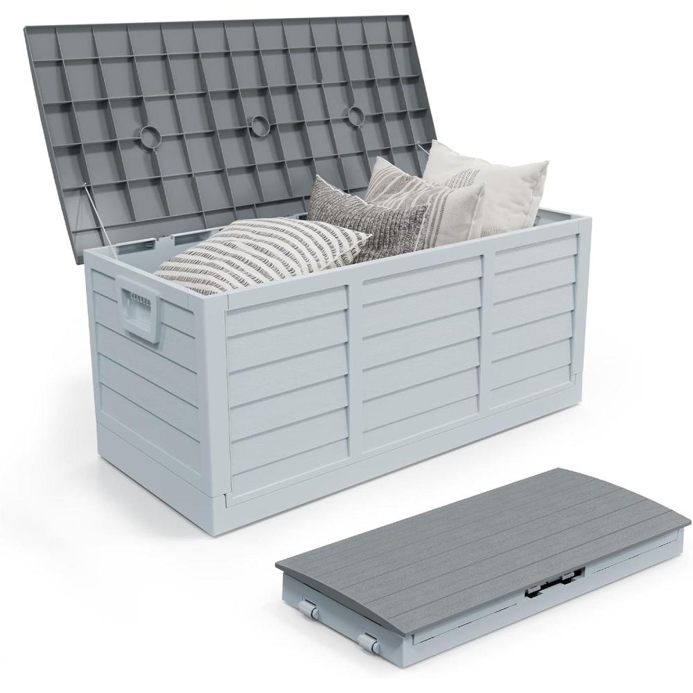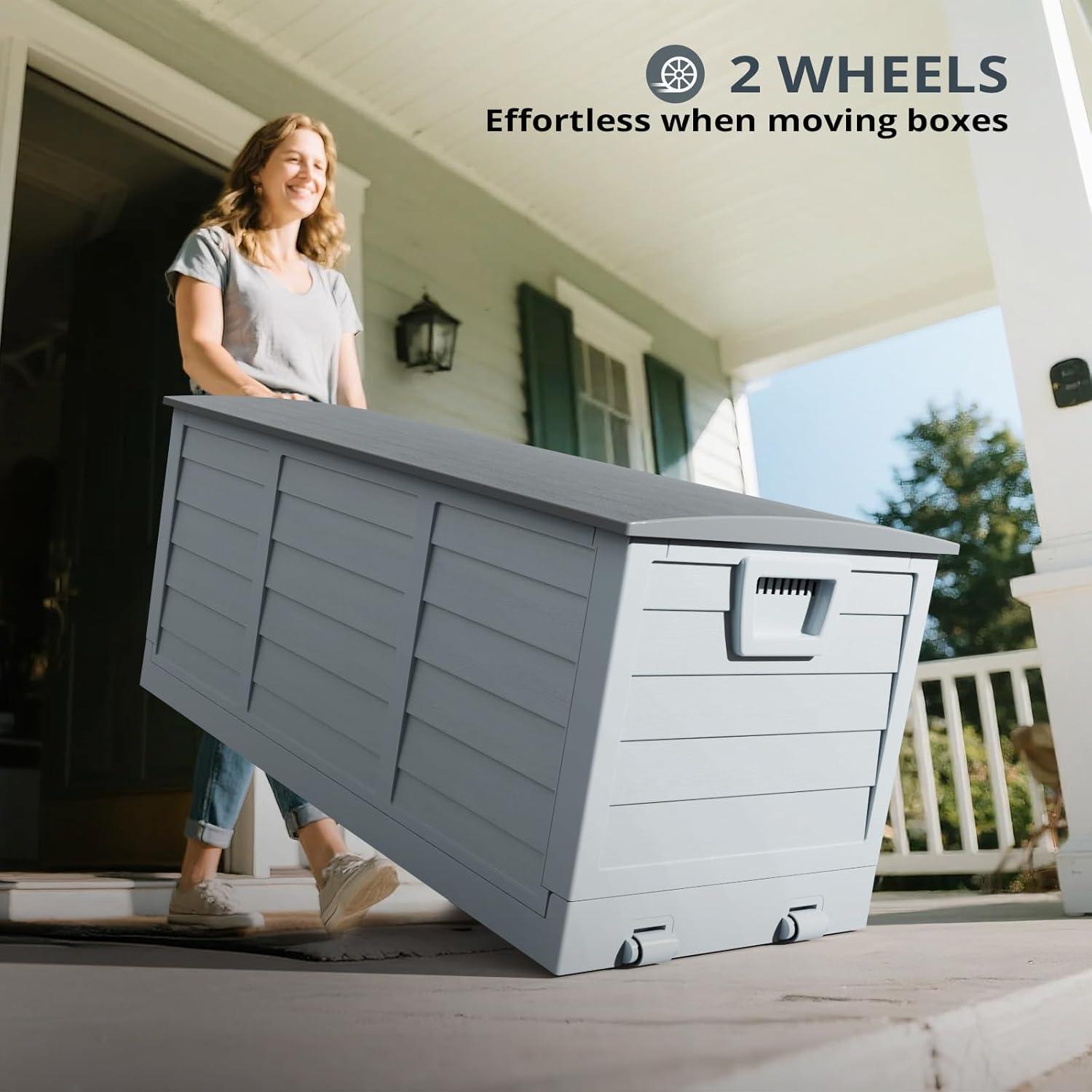 Capacious Storage – Dive into a spacious 75-gallon capacity that effortlessly accommodates your pool equipment, garden tools, and more. This robust storage box with a lid ensures your outdoor essentials are protected and neatly organized