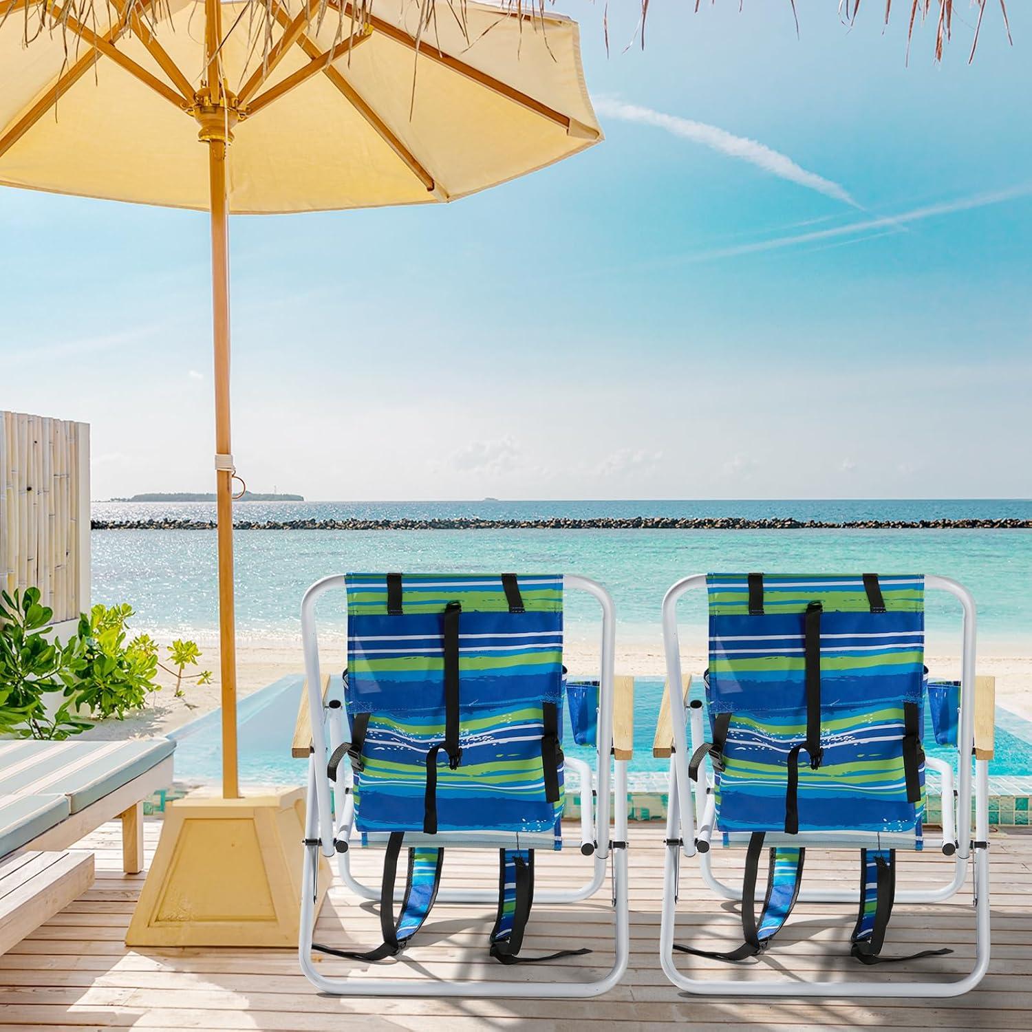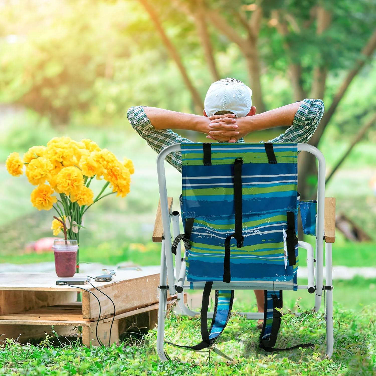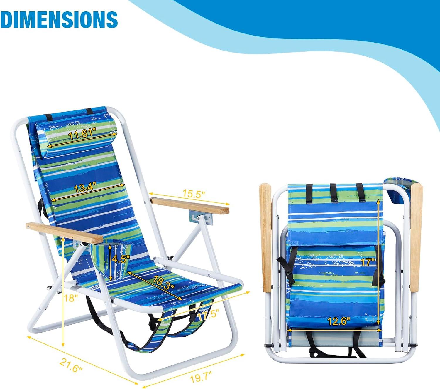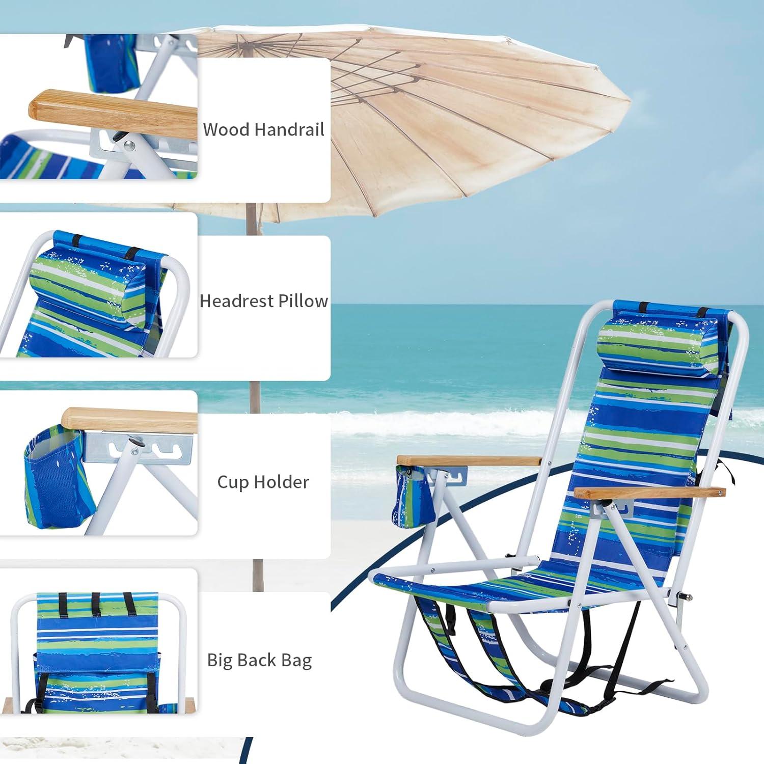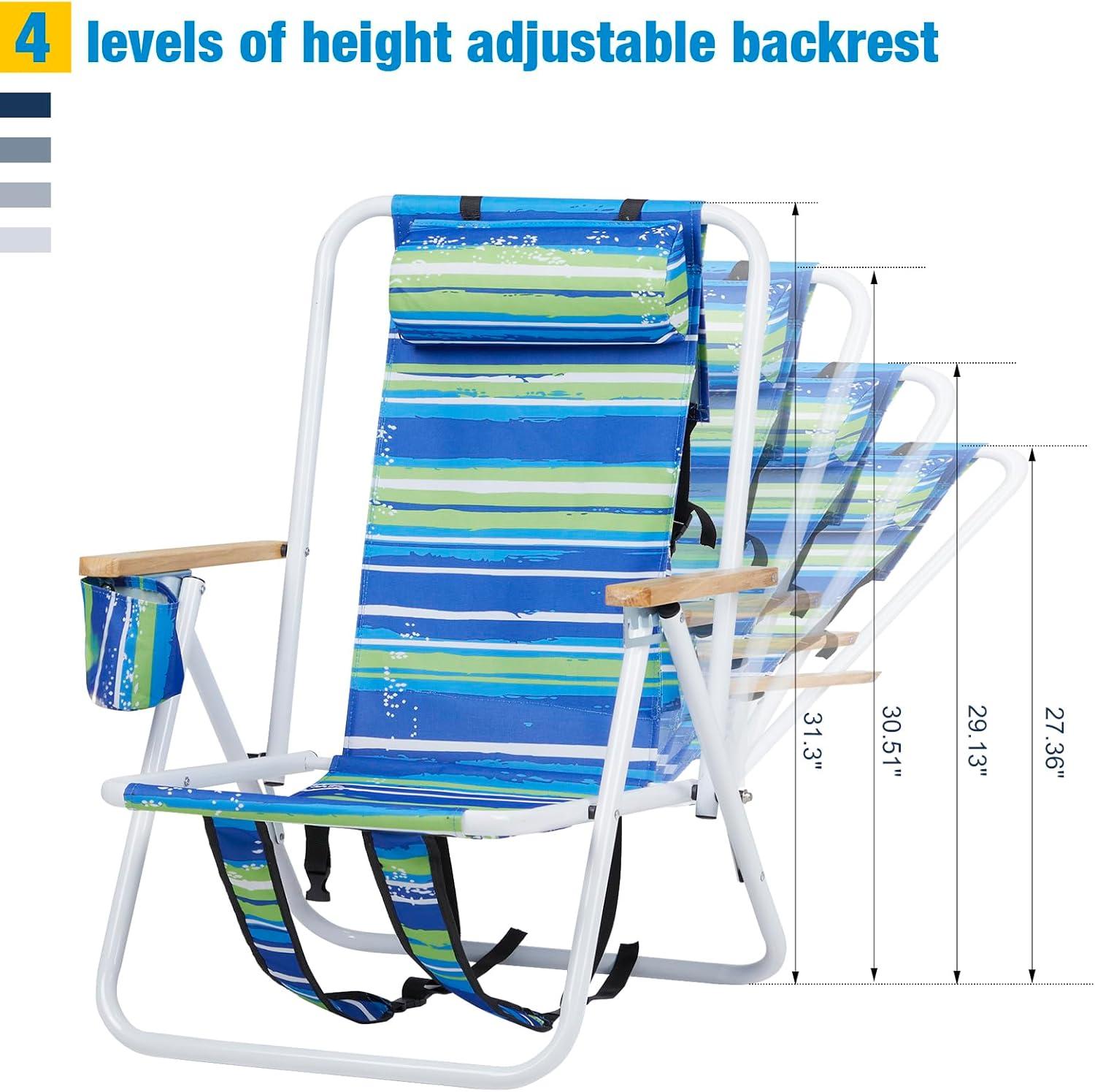 【Adjustable Backrest】Our beach chair is equipped with an adjustable headrest, the flexible back design supports and fits your body, allowing you to relax with your whole body after exhaustion, not only can relax your head, but also Can relax your body