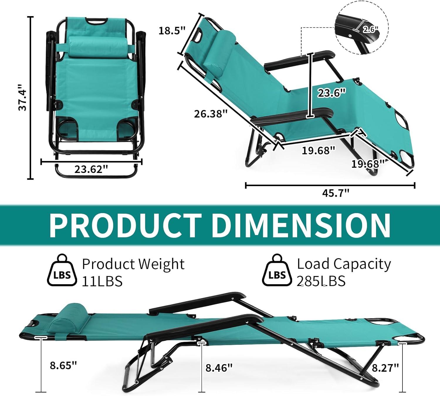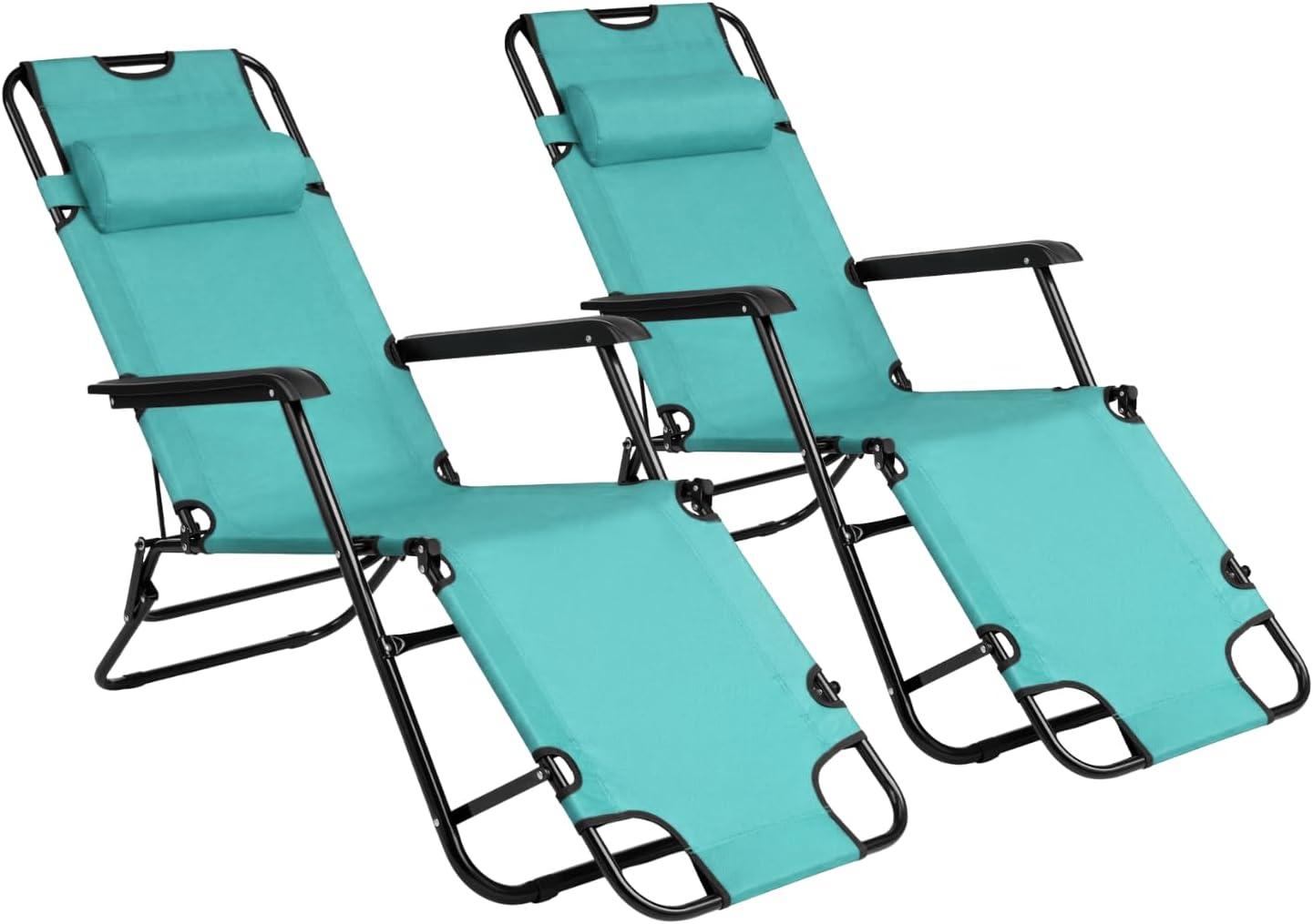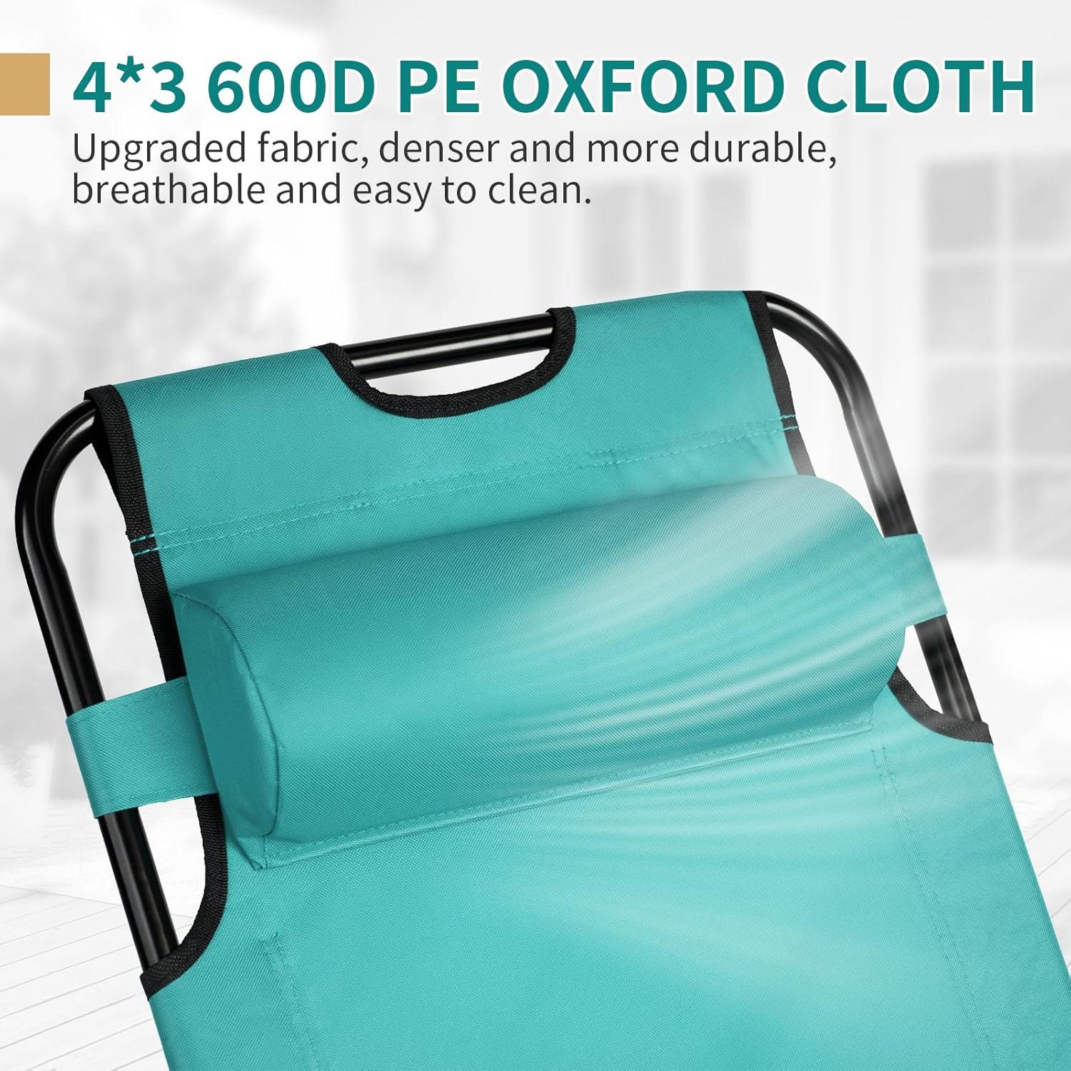 Outvita Folding Chaise Lounge Chair, Outdoor Adjustable Recliner Chair with Pillow for Camping, Beach, Poolside, Garden, Backyard, Lawn(Mint Green)