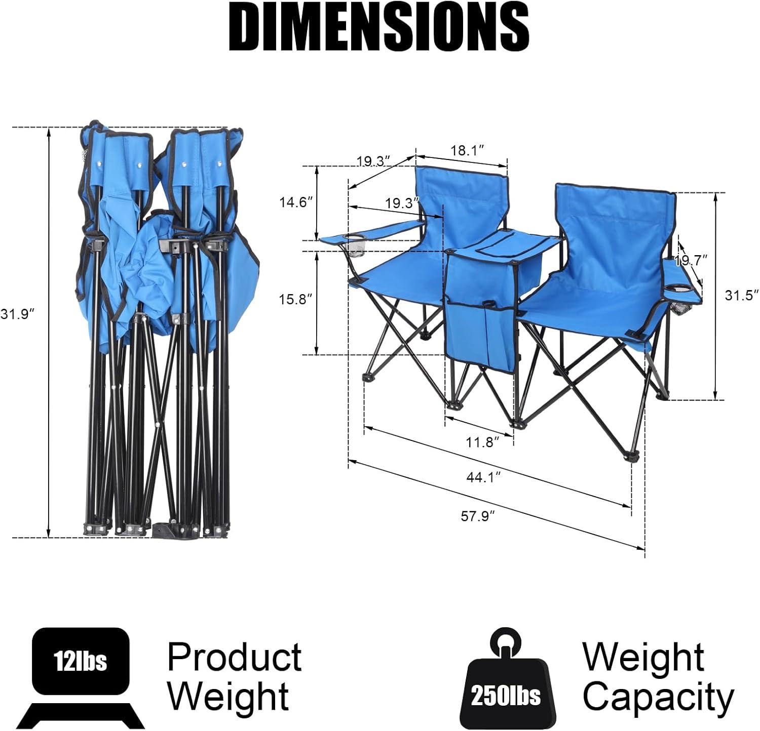 Be the first to review “Outvita Folding Double Camping Chair w/Umbrella Beverage Holder Carrying Bag Cooler Fold Up Table, Large Bearing Capacity for Beach Patio Pool Park Outdoor Blue(Blue)”