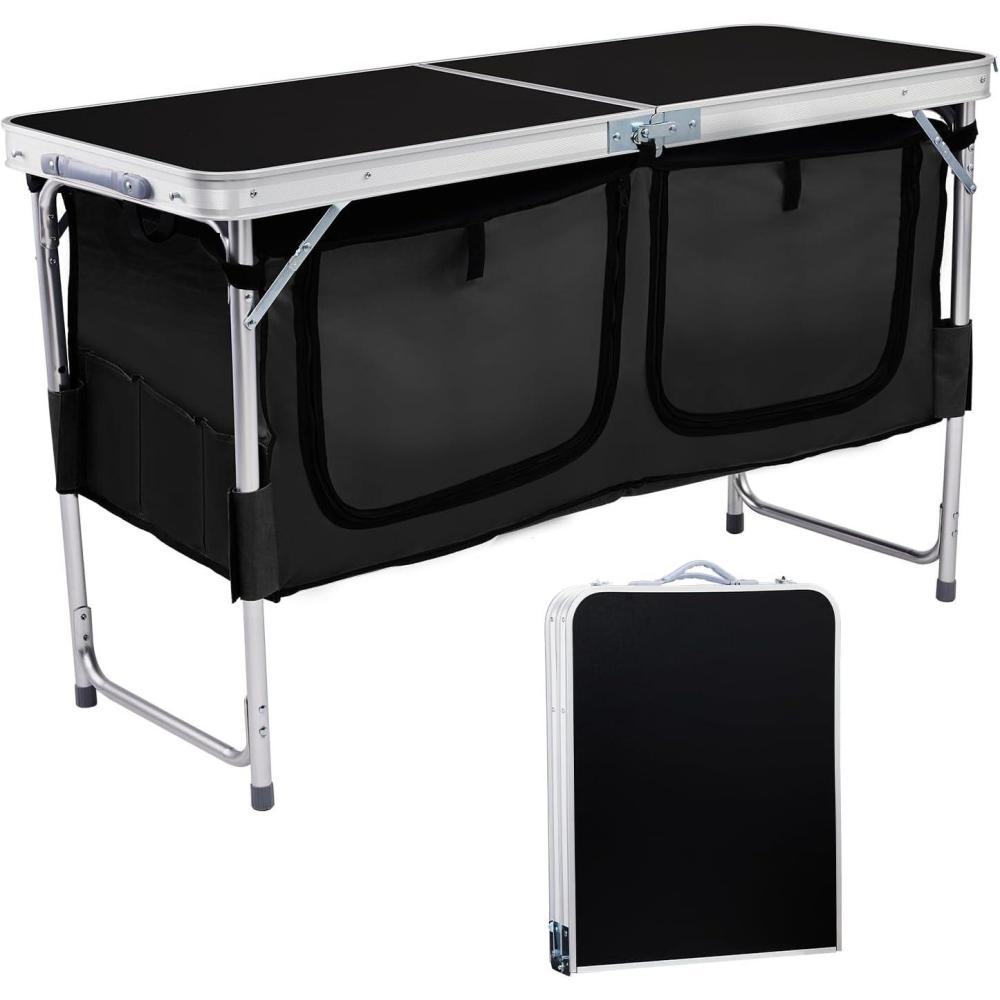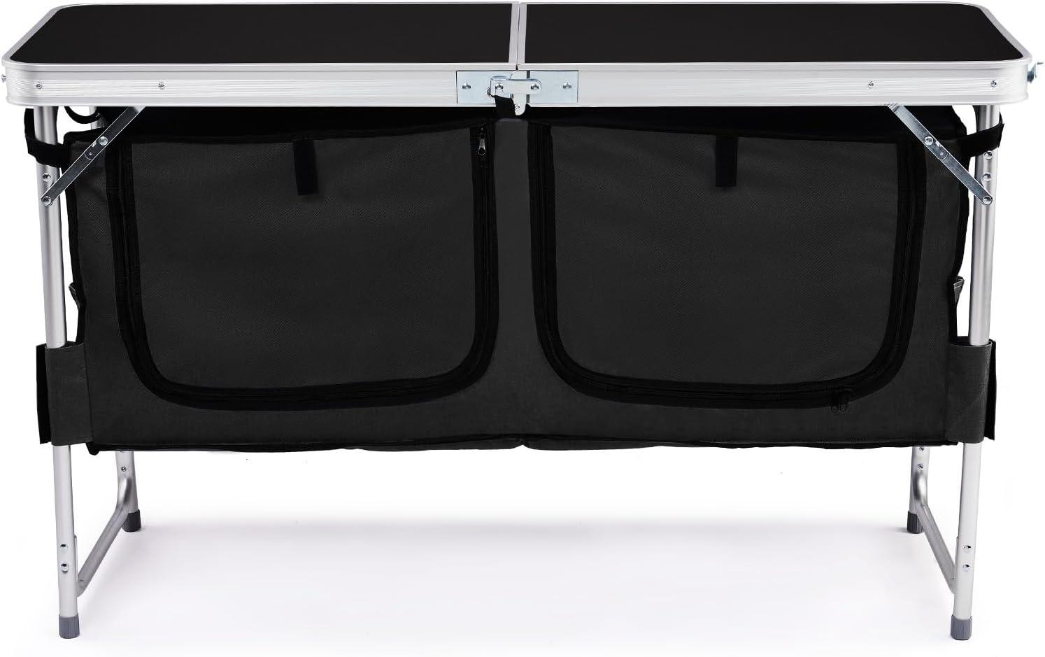 imageOutvita Folding Table 4FT Aluminum Camping Table with Large Storage Space and Adjustable Height Picnic Table Lightweight for Carring Outdoor Party Events BeachBlack
