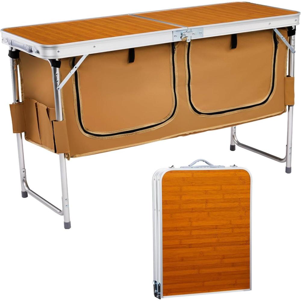 imageOutvita Folding Table 4FT Aluminum Camping Table with Large Storage Space and Adjustable Height Picnic Table Lightweight for Carring Outdoor Party Events BeachWood