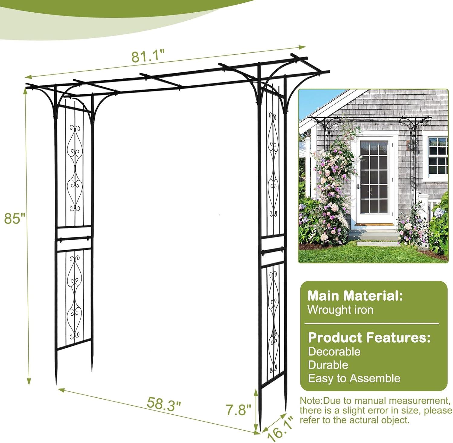 【Easy-to-Assemble】This garden arch trellis comes with pre-cut, pre-drilled parts, premium hardware, and reinforced nuts. Follow the detailed installation instructions, and you can set up this metal garden arbor quickly (size: 57.4×23.1×88.6 inches)
