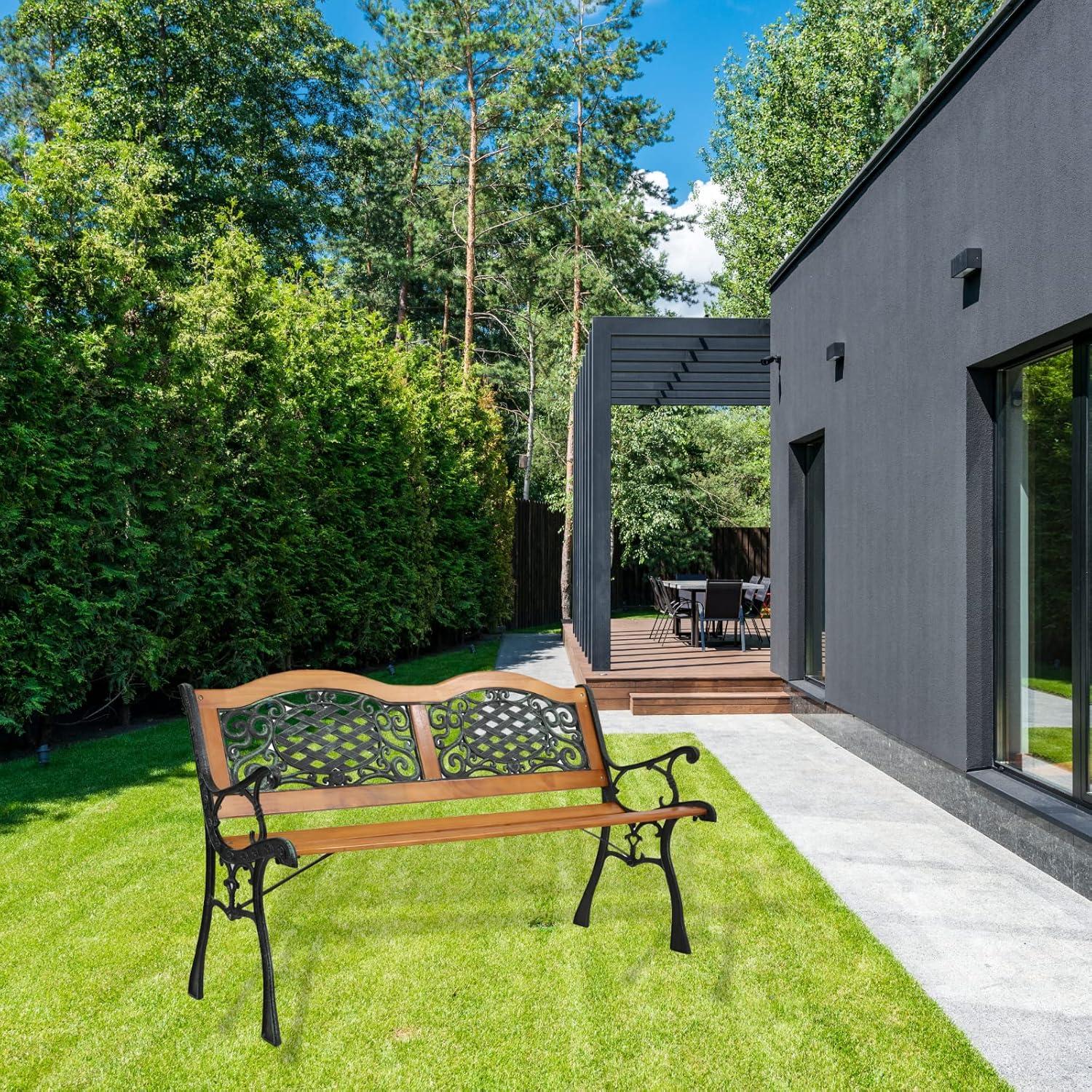 Outvita Garden Bench, 48" Front Porch Bench with Steel Frame Solid Construction, Outdoor Seating for Yard,Playground, Patio(Classical)