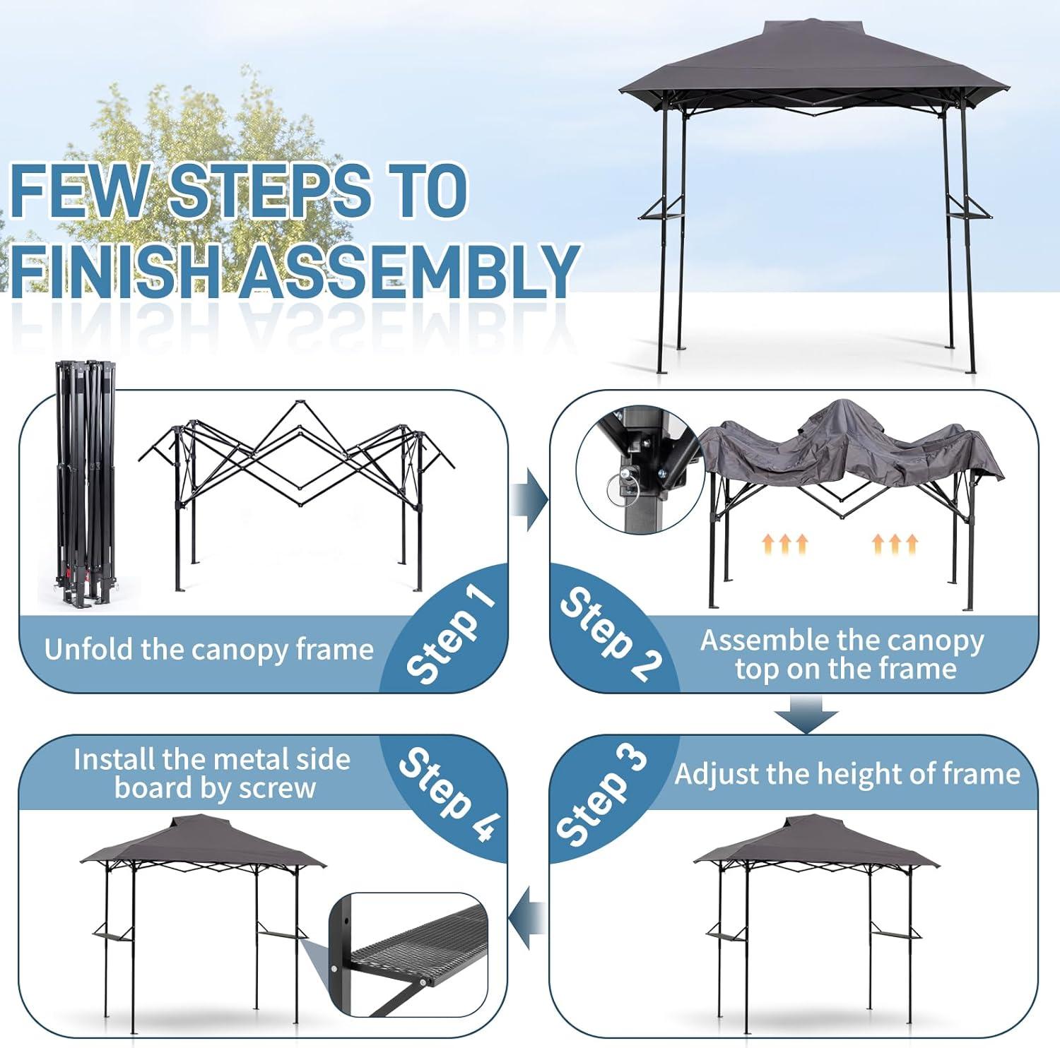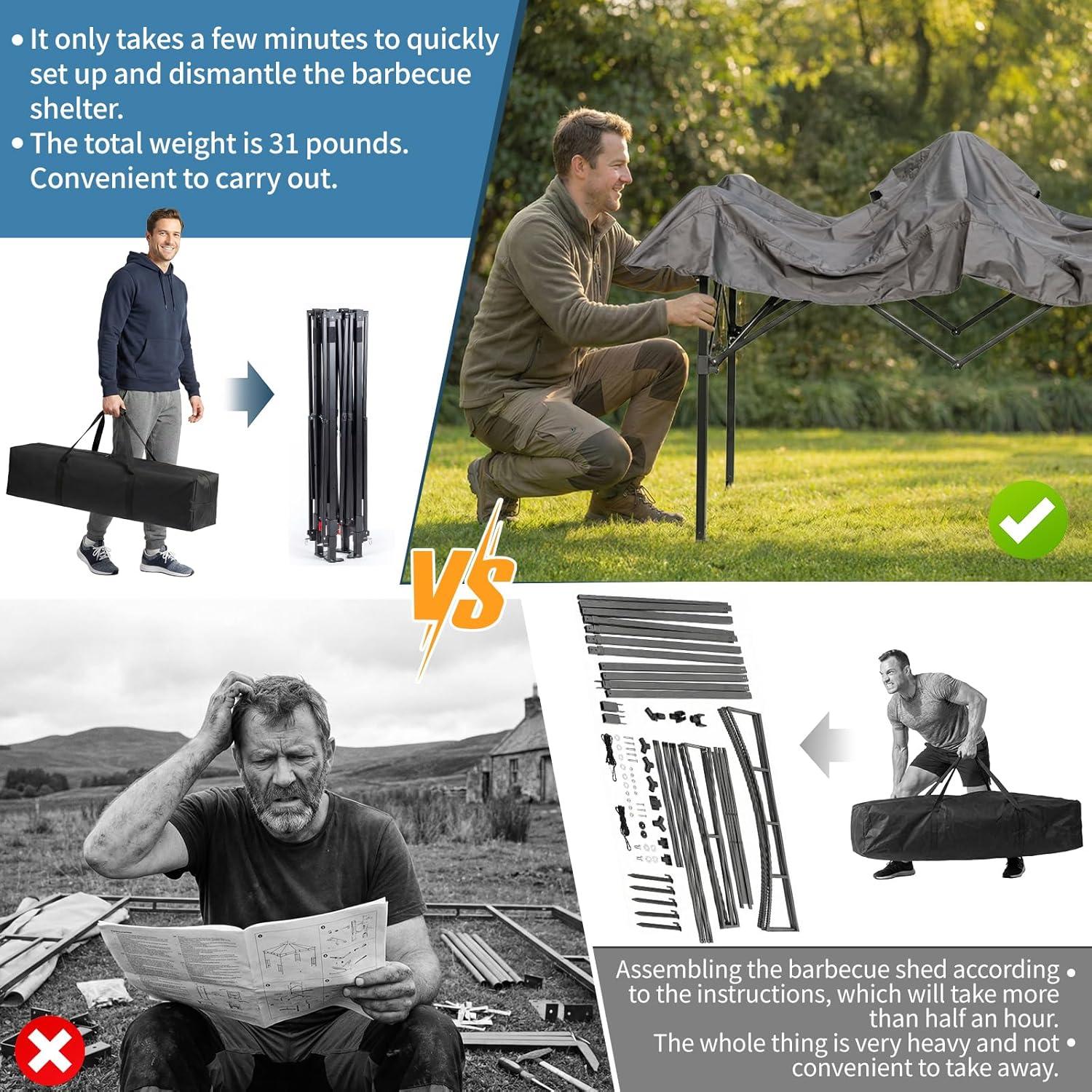 Effortless 5-Minute Setup: Say goodbye to complicated assembly! This pop-up gazebo for your outdoor grill unfolds and sets up in just 5 minutes. Spend less time building and more time enjoying your backyard barbecue under your very own grill gazebo canopy.