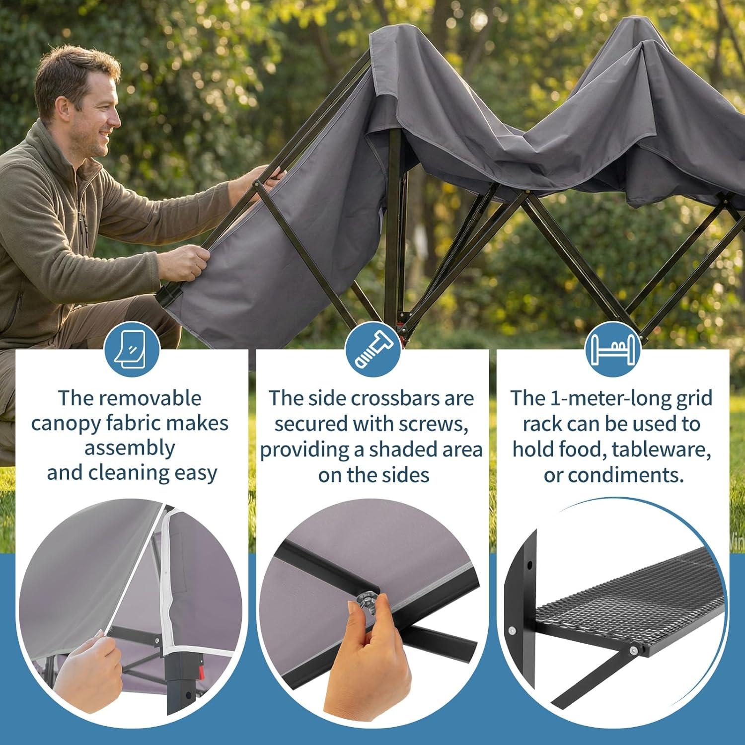 Wind & Weather-Ready Stability for Peace of Mind: This grill canopy for outdoor grill provides triple-anchored security. The heavy-duty frame, plus included ground stakes and guy ropes, keeps your BBQ tent firmly in place, so you can grill with confidence in any breeze.