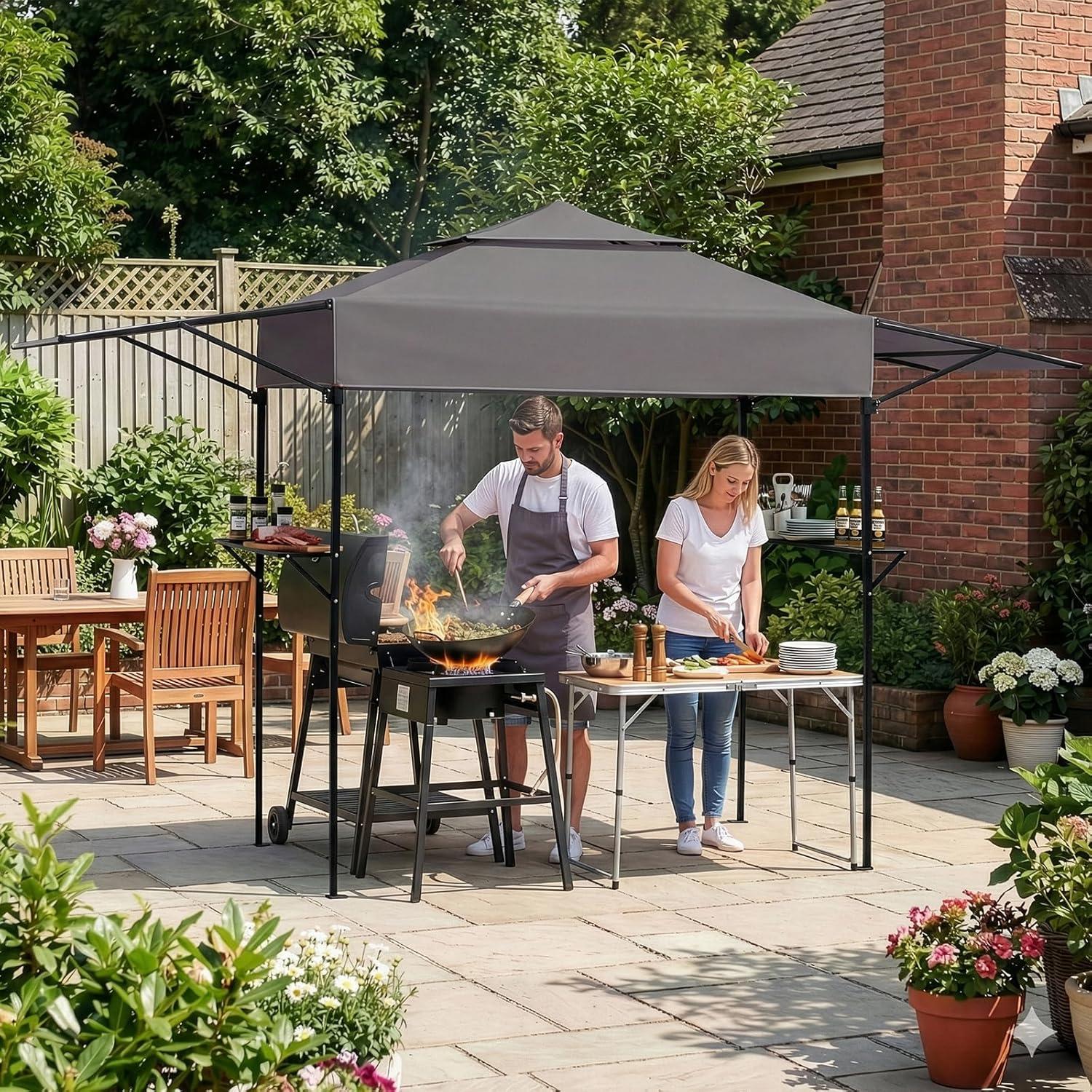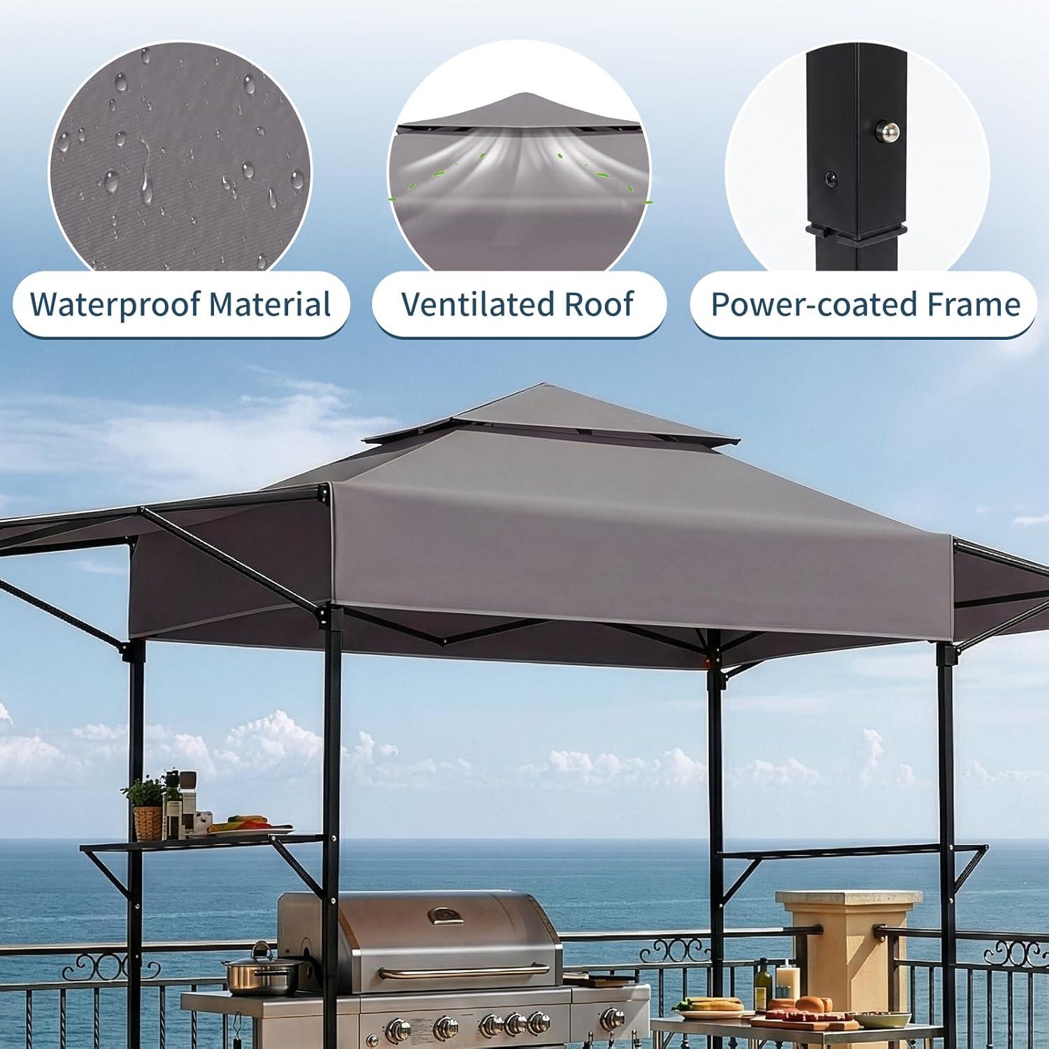 Full Coverage & Adjustable Sun Protection: Your ultimate outdoor gazebo for cooking! The waterproof, UV-blocking top keeps you and your grill protected. Two smart ventilations in this grill gazebo to keep smoke moving and your cooking area comfortable.
