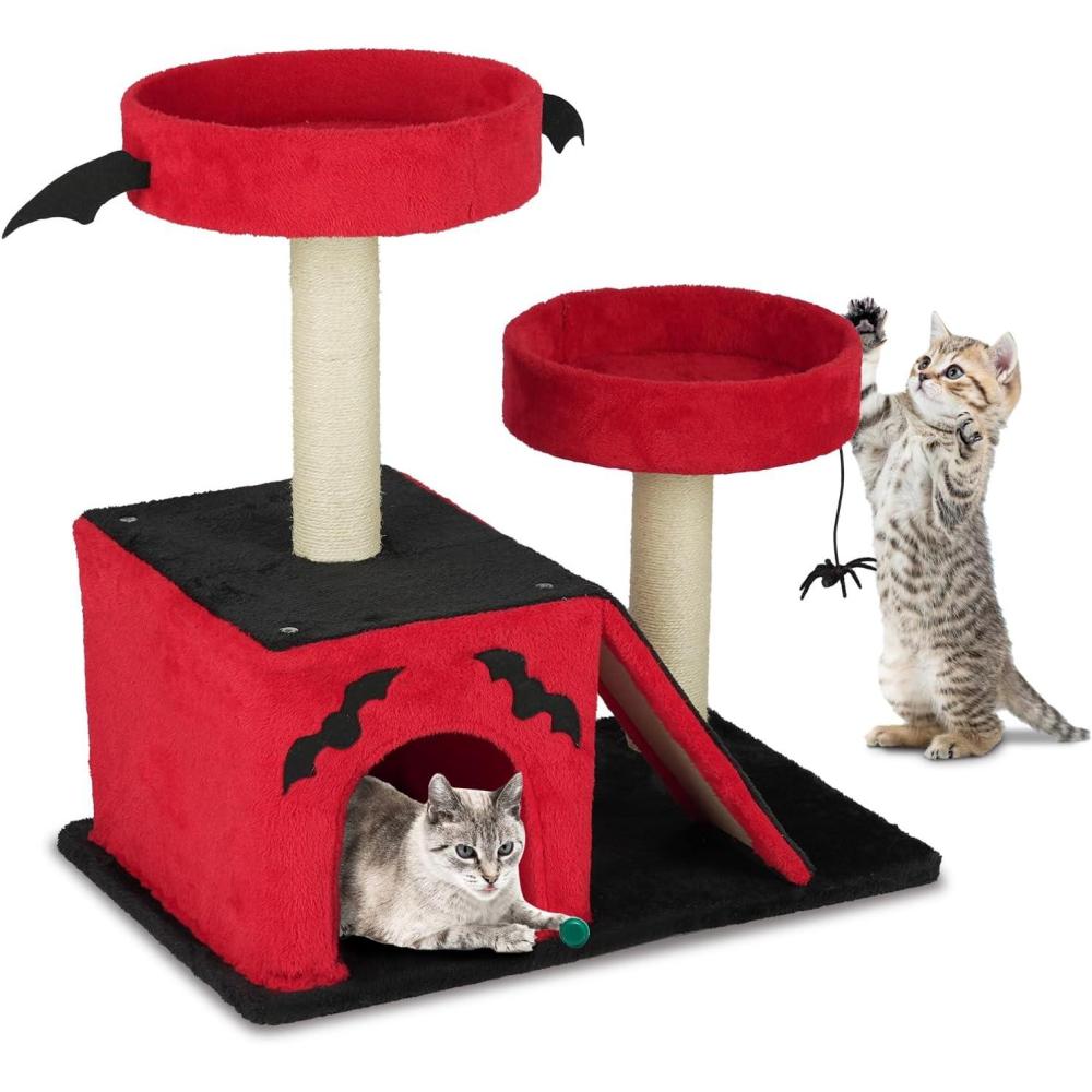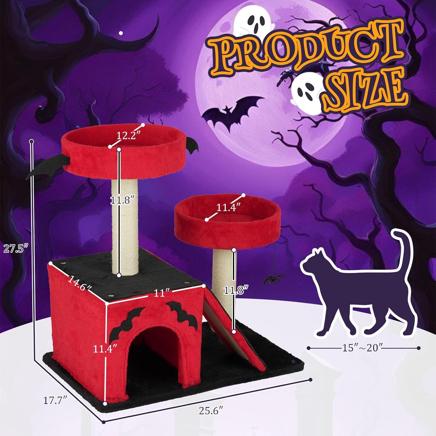 Outvita Halloween Cat Tree, 44″ Cat Tower with Spacious Cat Condo, Gothic Scratching Posts with 1 Padded Perches, Large Platform, Cat Activities Furniture, Red & Black(26″)