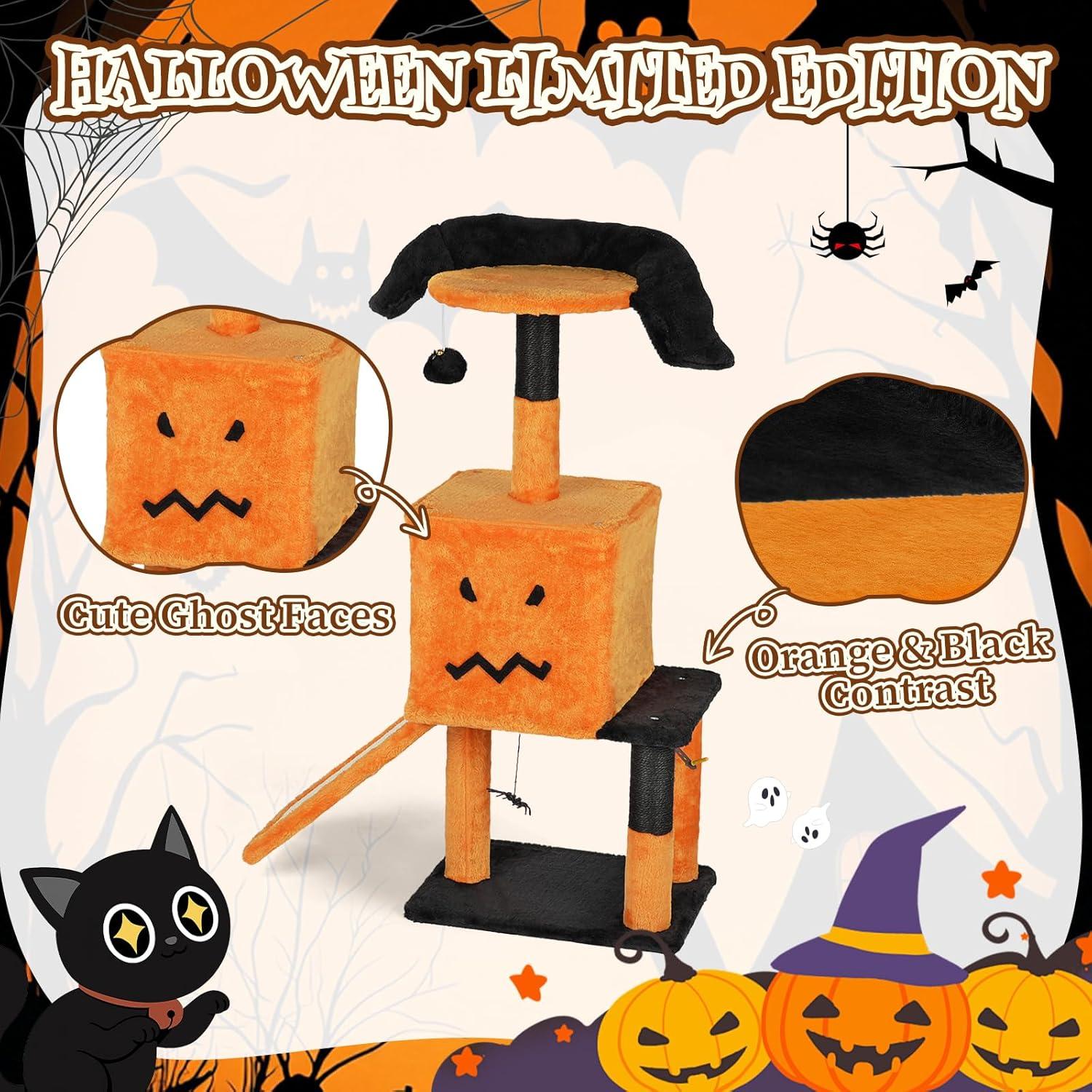 Outvita Halloween Cat Tree, 44" Cat Tower with Spacious Cat Condo, Gothic Scratching Posts with 1 Padded Perches, Large Platform, Cat Activities Furniture, Red & Black(40")