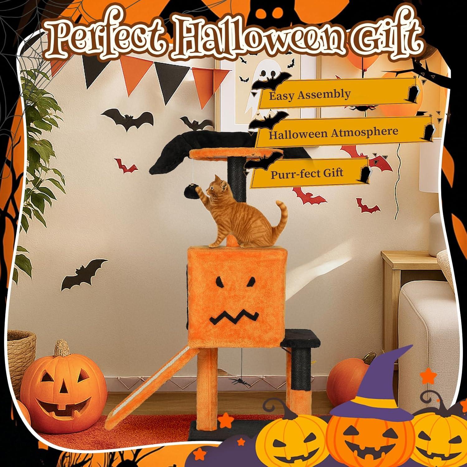 Outvita Halloween Cat Tree, 44″ Cat Tower with Spacious Cat Condo, Gothic Scratching Posts with 1 Padded Perches, Large Platform, Cat Activities Furniture, Red & Black(42″)