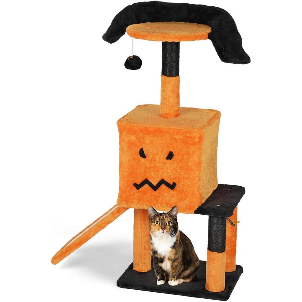 imageOutvita Halloween Cat Tree 44quot Cat Tower with Spacious Cat Condo Gothic Scratching Posts with 1 Padded Perches Large Platform Cat Activities Furniture Red ampamp Black40