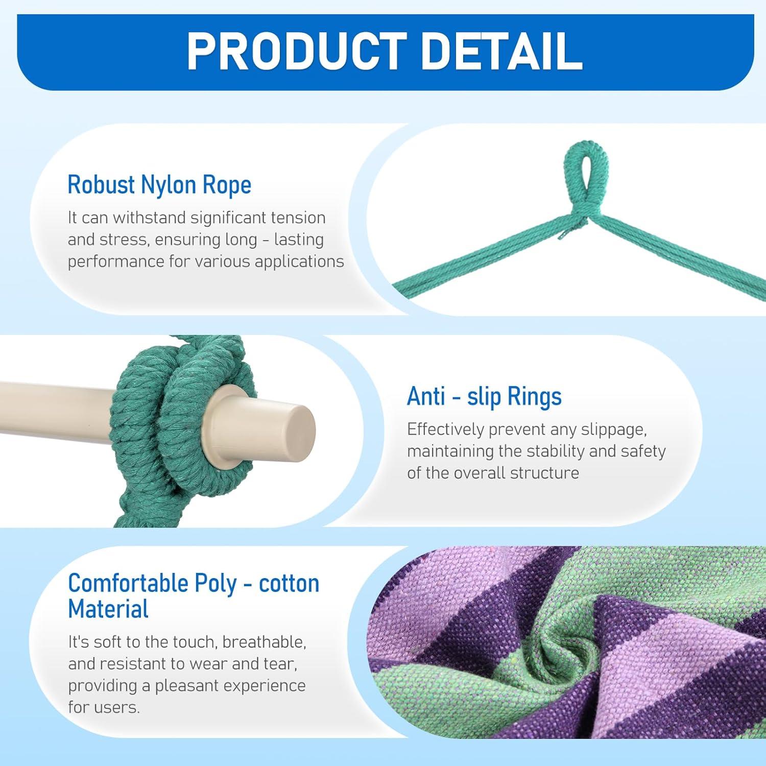 imageOutvita Hammock Chair Hanging Rope Swing Galvanized Steel Pole with NonSlip Ring Includes 2 Fluffy Pillows Maximum Weight Capacity 500 lbs for Indoor Patio Backyard Hanging Mix Color StripeGreen and Purple Stripes