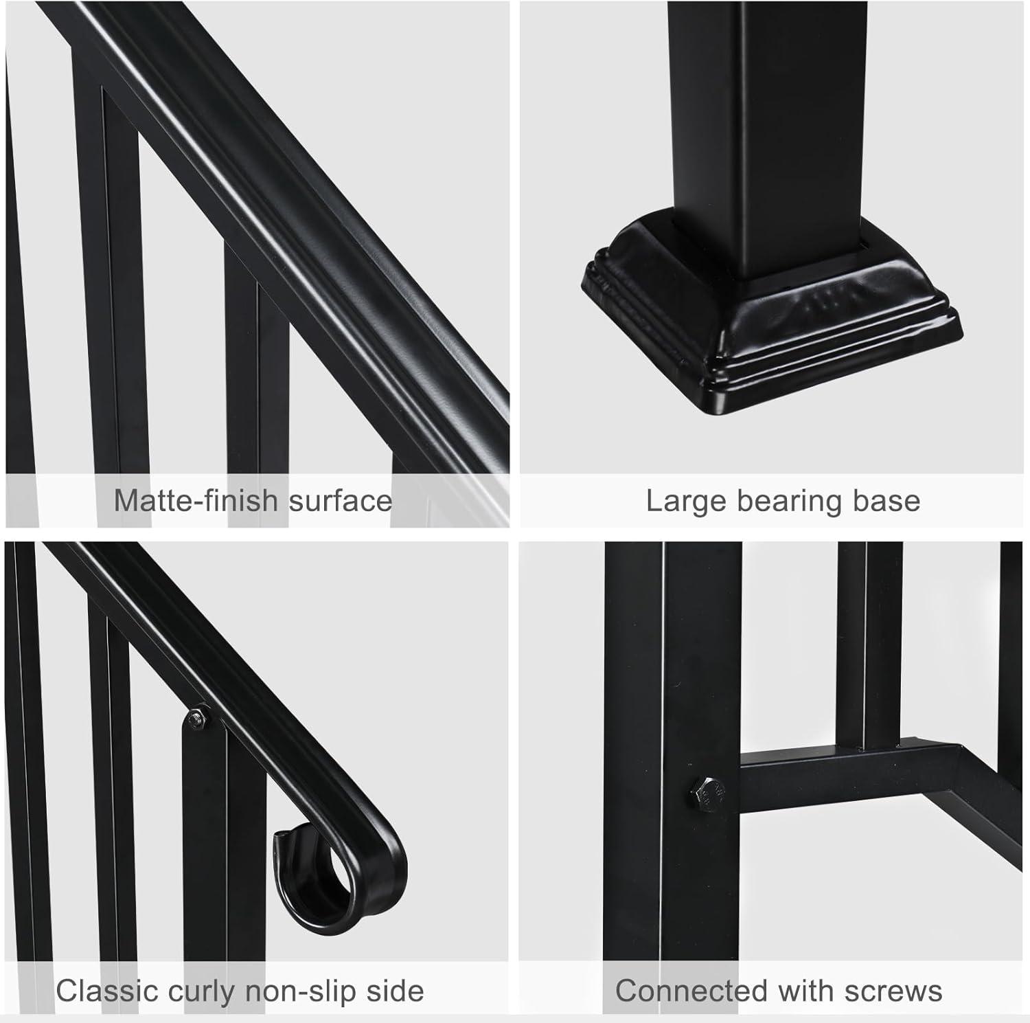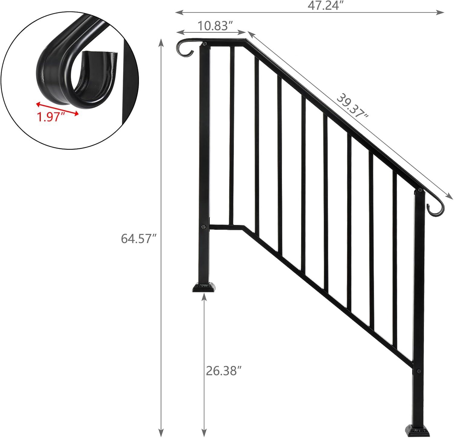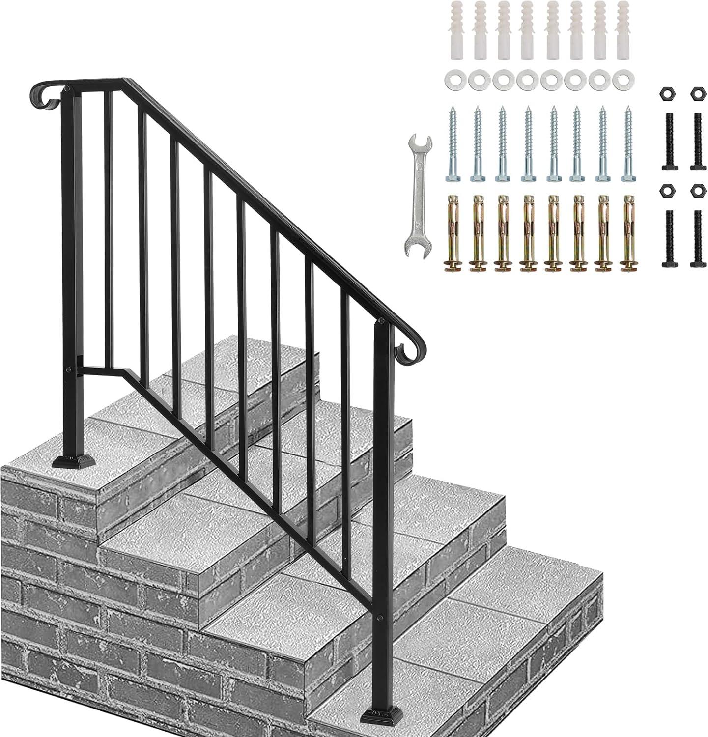 Outvita Handrails for Outdoor Steps, Black Wrought Iron Handrail Fits 3 or 4 Steps, Transitional Handrail with Installation Kit, Stair Railing for Concrete Steps or Wooden Stairs(Black)