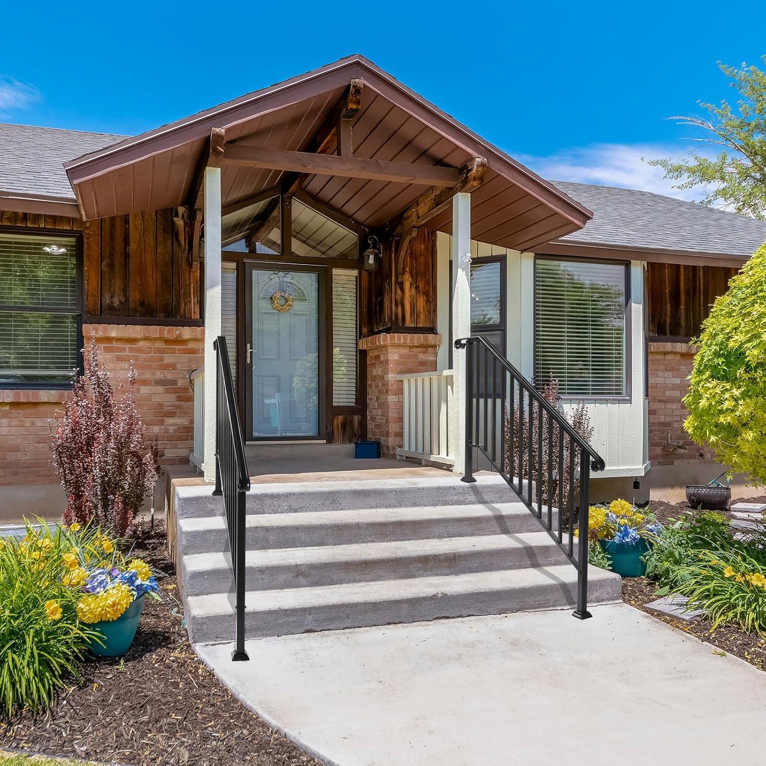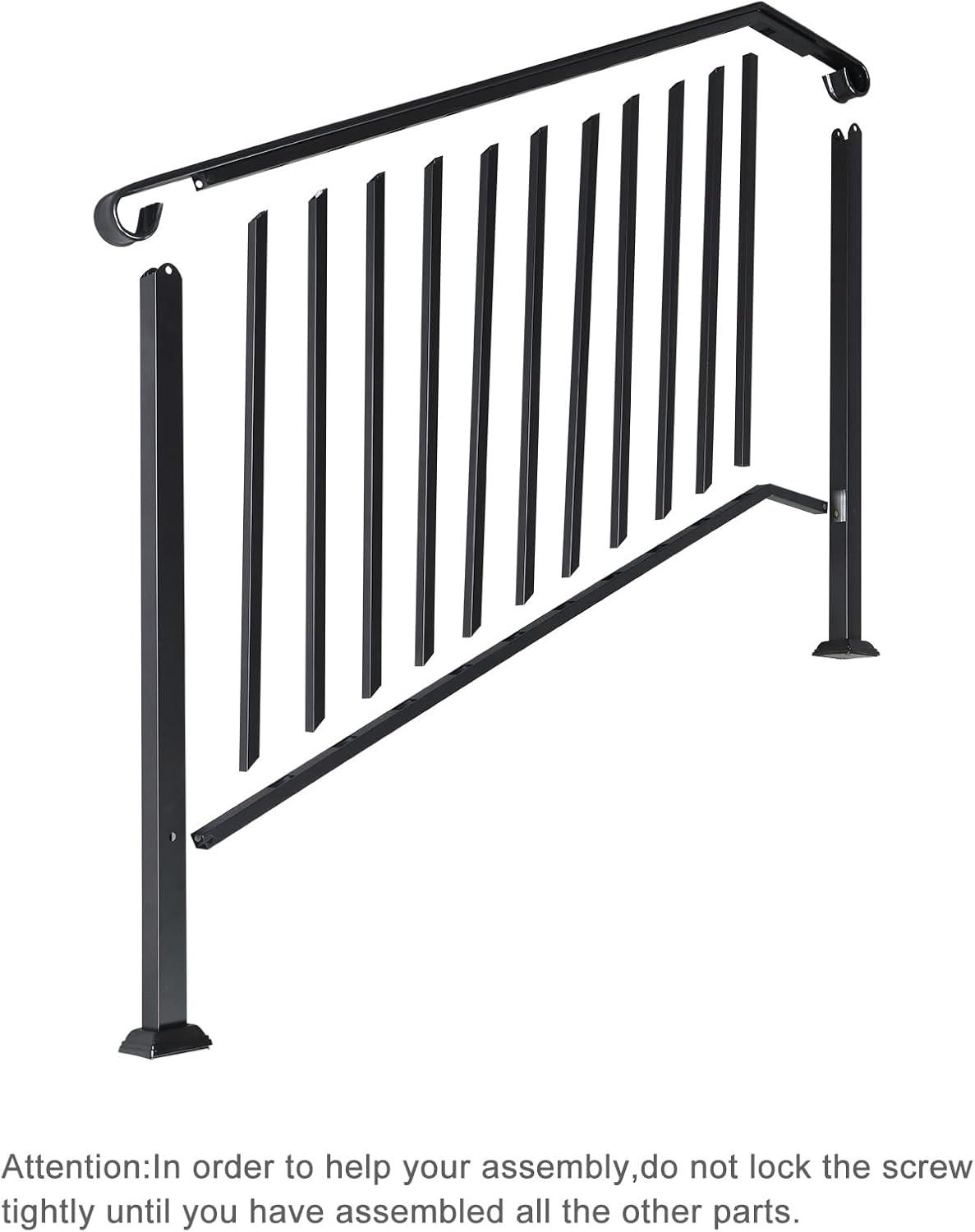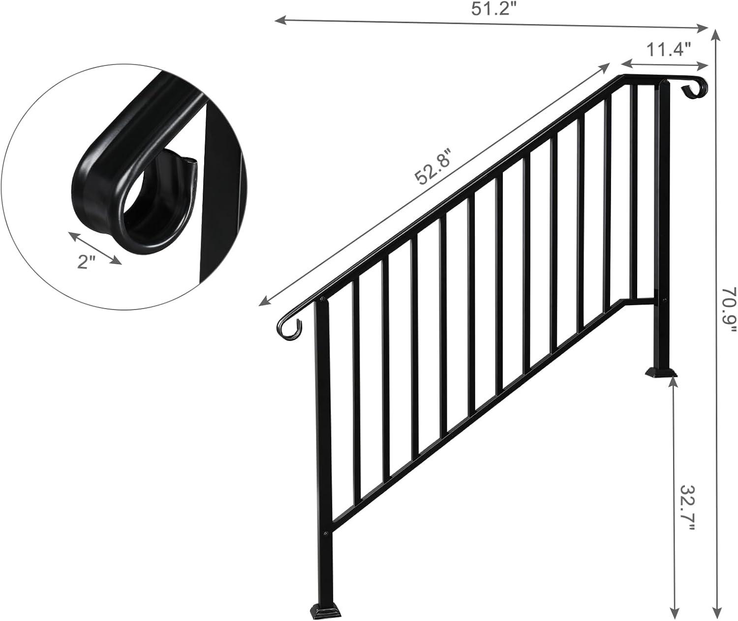 Outvita Handrails for Outdoor Steps, Black Wrought Iron Handrail Fits 3 or 4 Steps, Transitional Handrail with Installation Kit, Stair Railing for Concrete Steps or Wooden Stairs(Black)