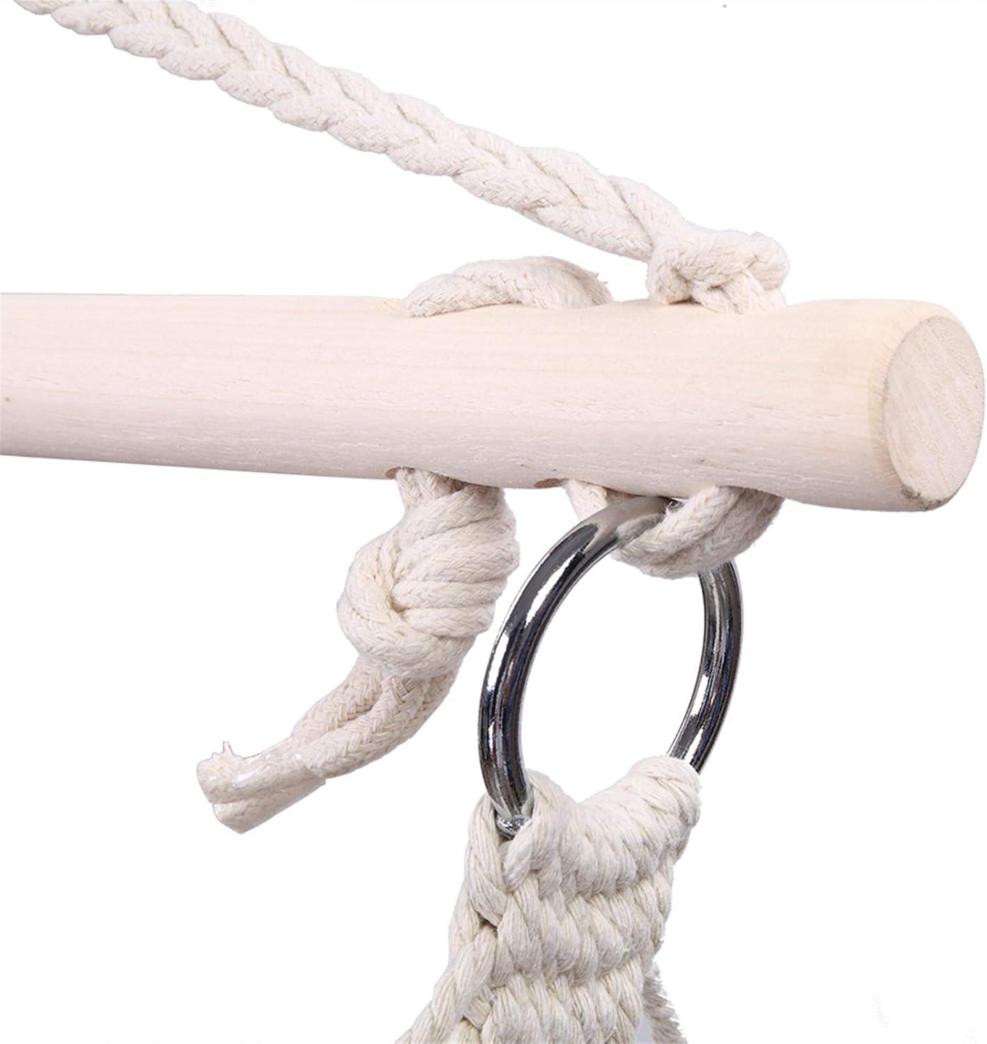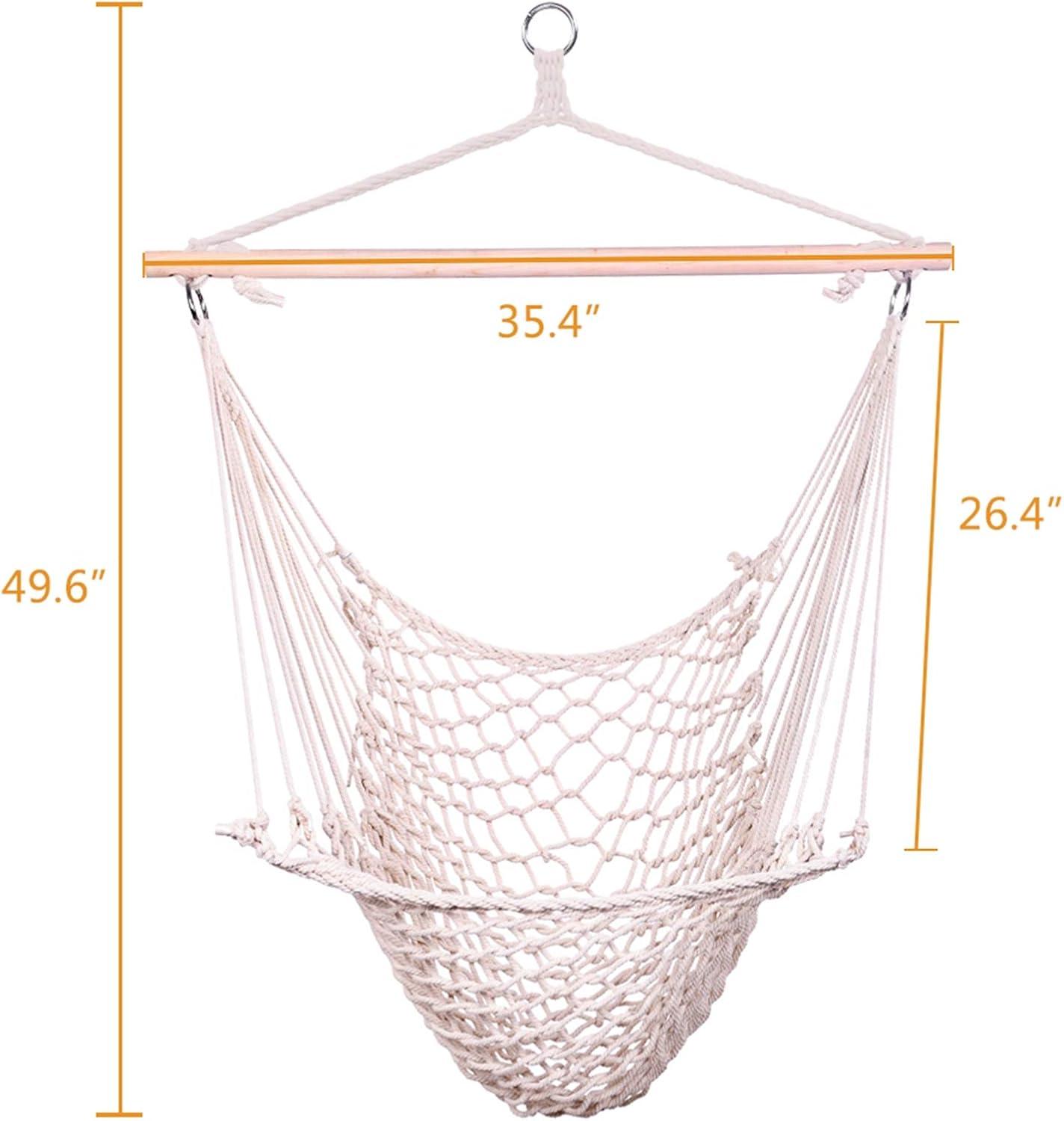 【EASY TO INSTALL】This hammock chair comes with a wooden bar to help hang the hammock. Its very easy to install and remove – ready in just minutes. Note: This can not to be left out overnight, be caught in the rain or be used as a swing.