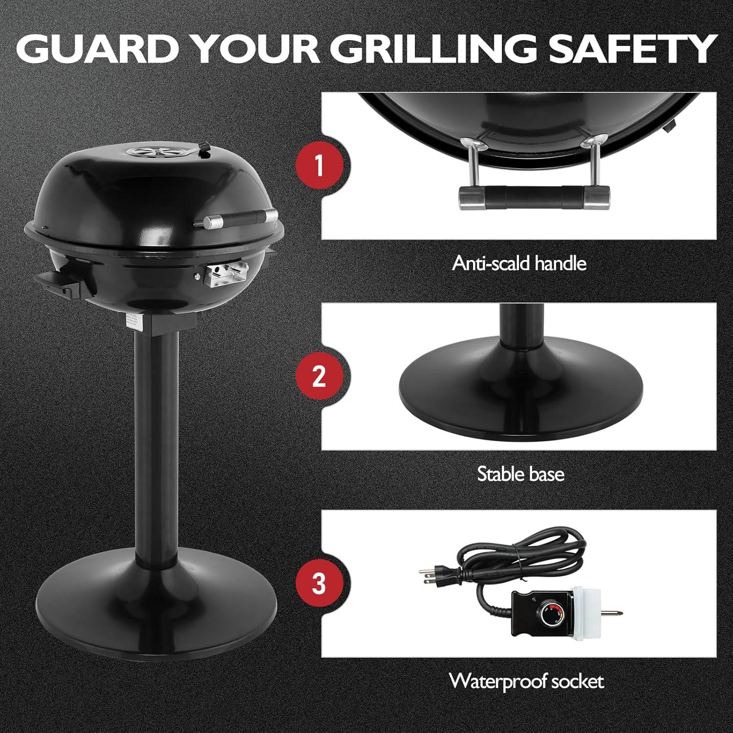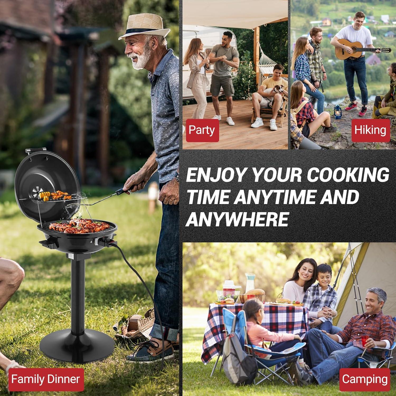 Durable & Safe for Outdoor Use: Designed with high-quality chrome-plated grates and stainless steel heating tubes, this grill is built to last. The waterproof plug and sturdy stand ensure safe and stable outdoor cooking