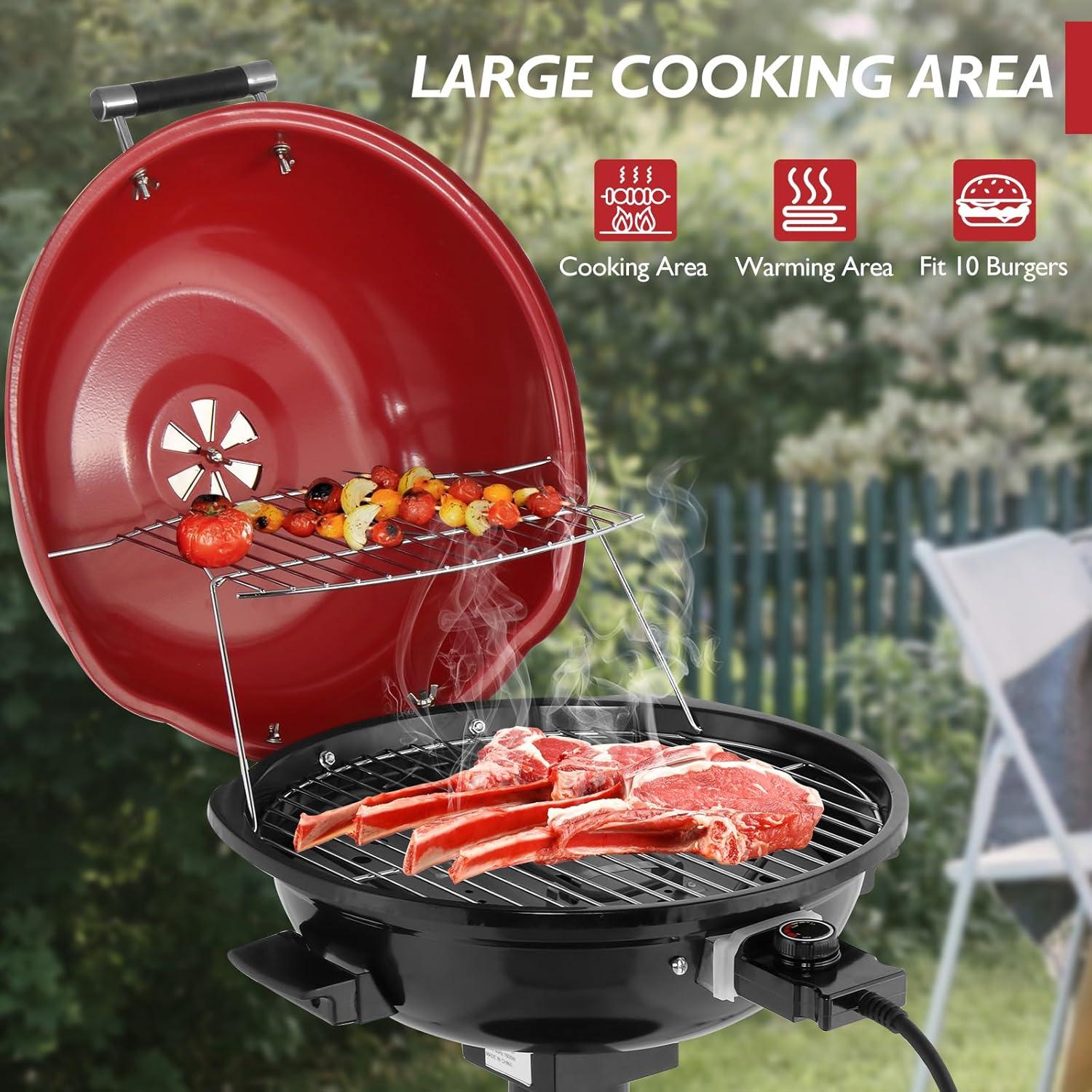 Spacious Cooking Area for Gatherings: With a large grilling surface that fits up to 10 burgers at once, this electric grill is ideal for parties, family meals, and backyard cookouts. The foldable warming rack keeps food at the perfect temperature
