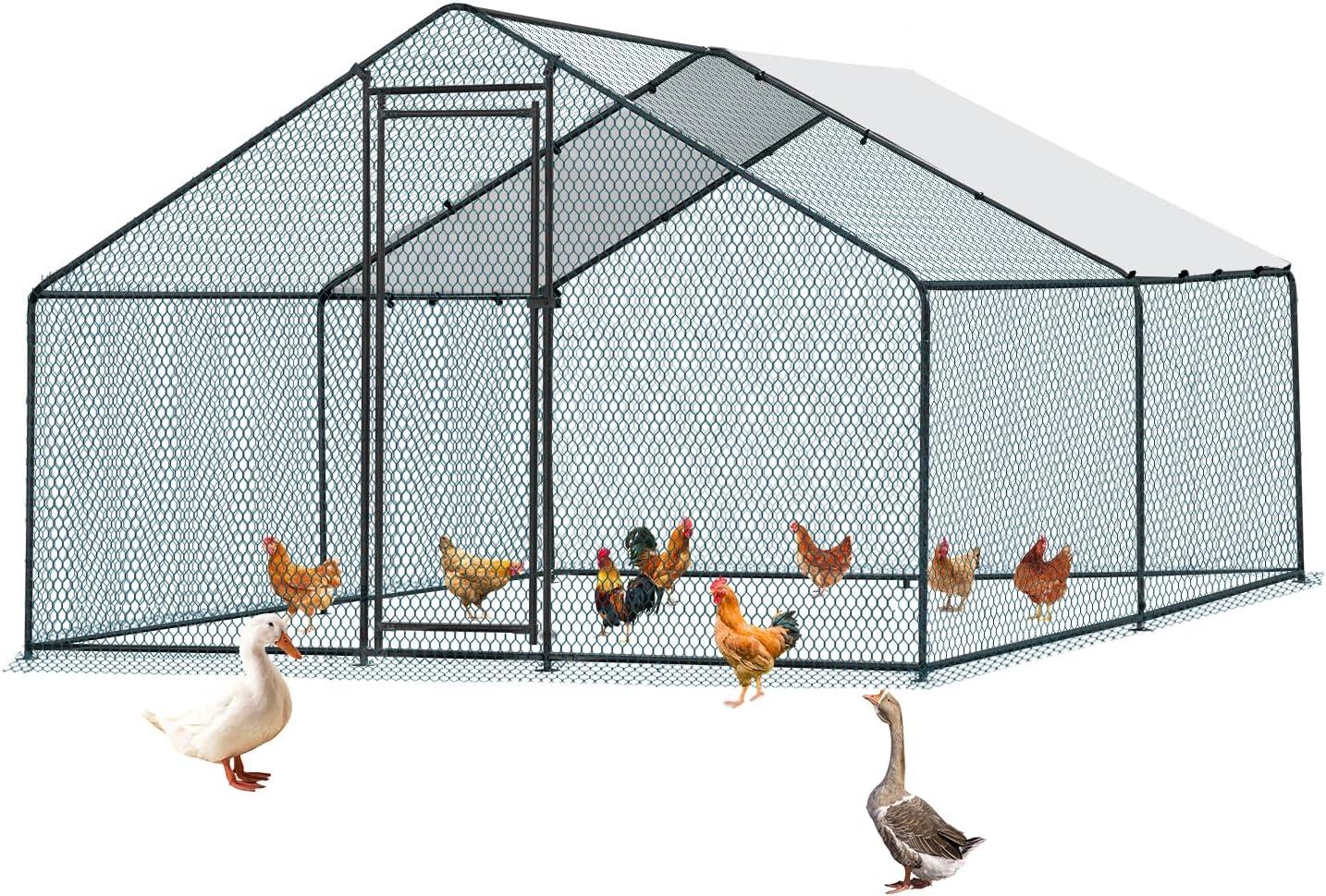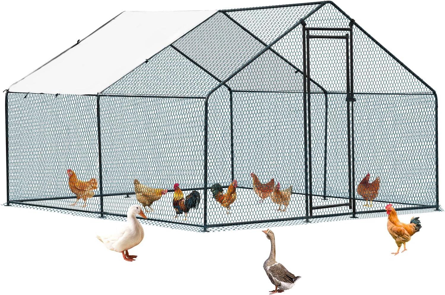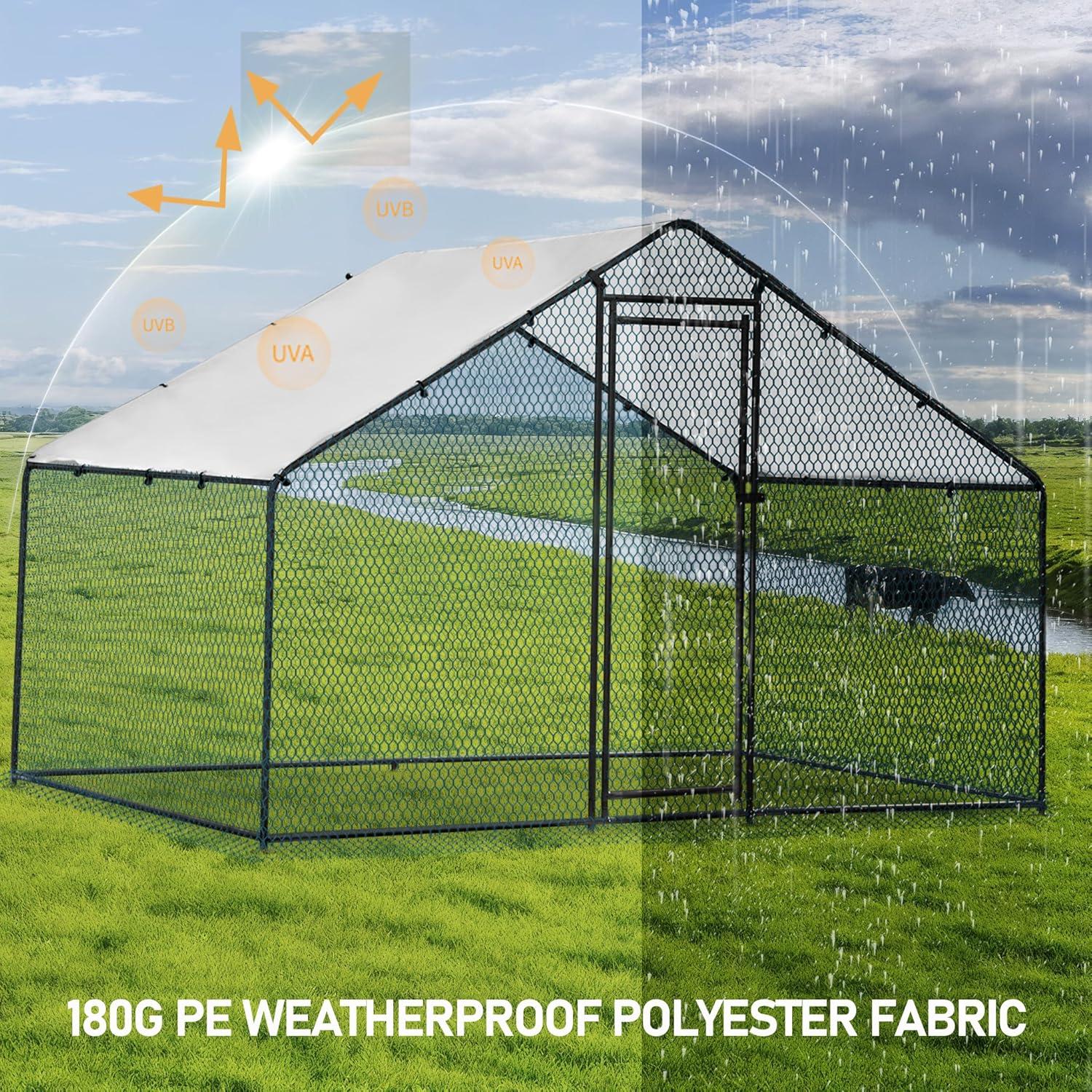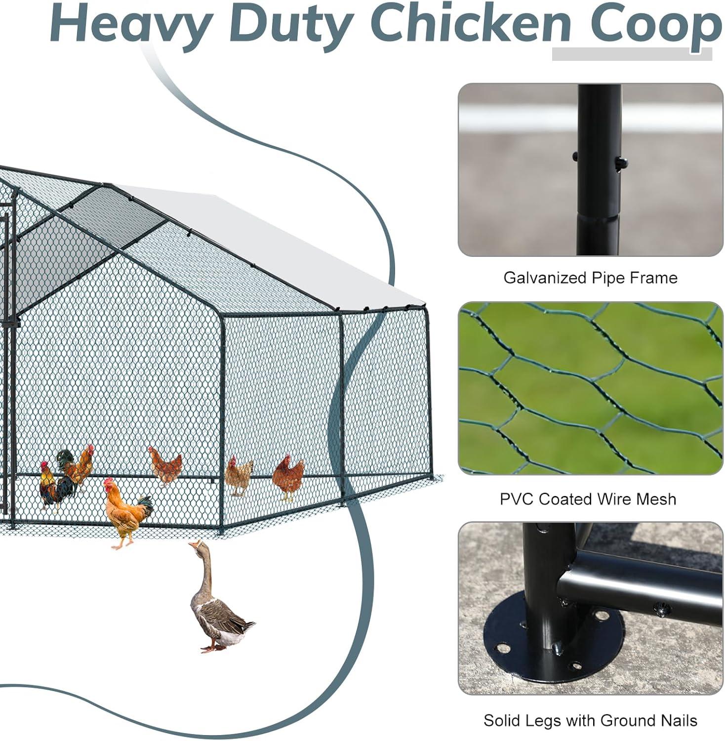 【Sturdy & Stable Metal Chicken Pen Construction】: Made of durable galvanized metal, this metal chicken coop resists rust, peeling and chipping. With solid bases and 6 top beams, the coop ensures great stability even in winds, standing out as a sturdy chicken cage for outdoor use.