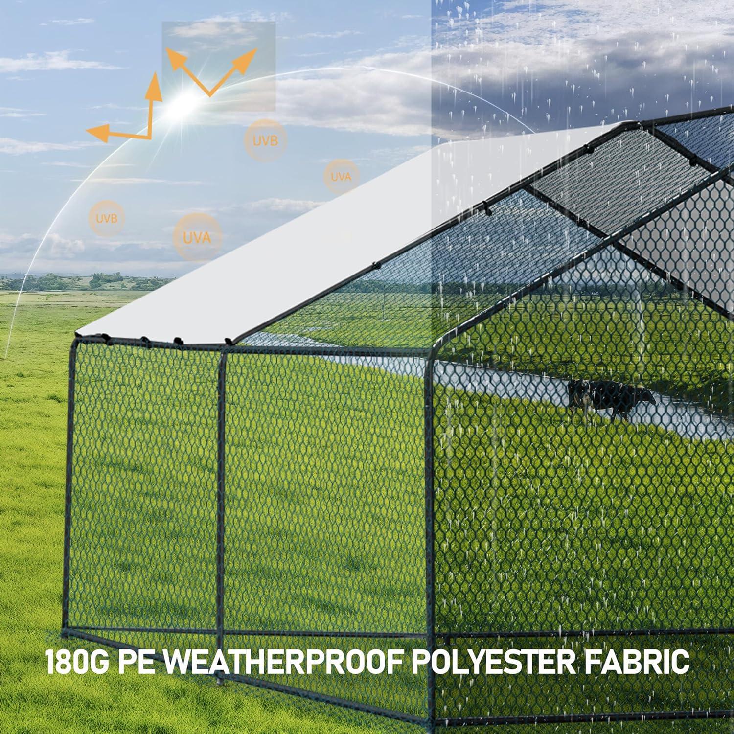 【Weatherproof Cover & Hexagonal Wire Mesh for Chicken Run】: This chicken run comes with a removable oxford waterproof canopy, offering all-weather protection. Its hexagonal wire mesh prevents escapes and deters predators. (Note: Remove snow from the roof promptly in snowstorms to keep the gallinero stable.) This gallinero para gallinas blends safety and weather resistance well.