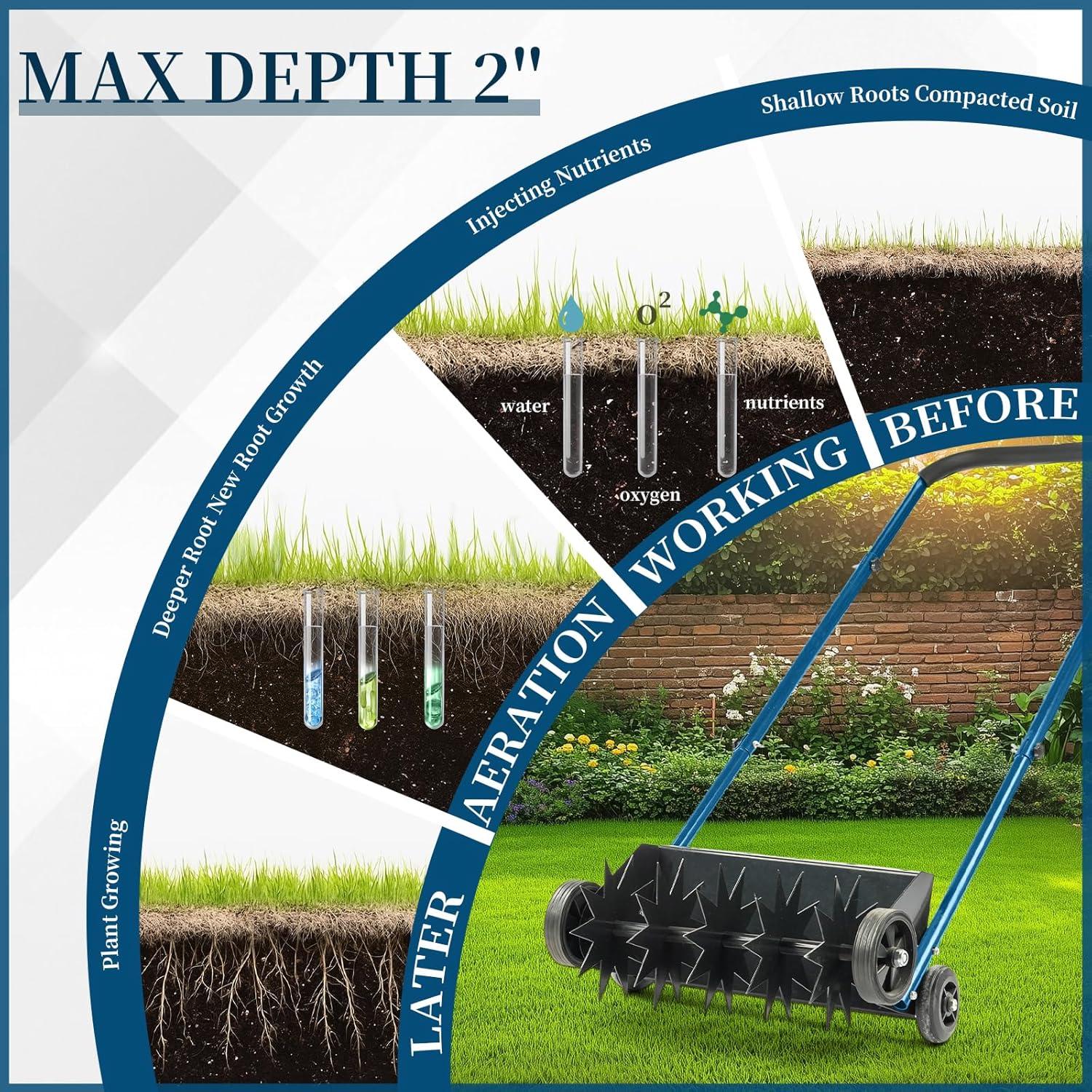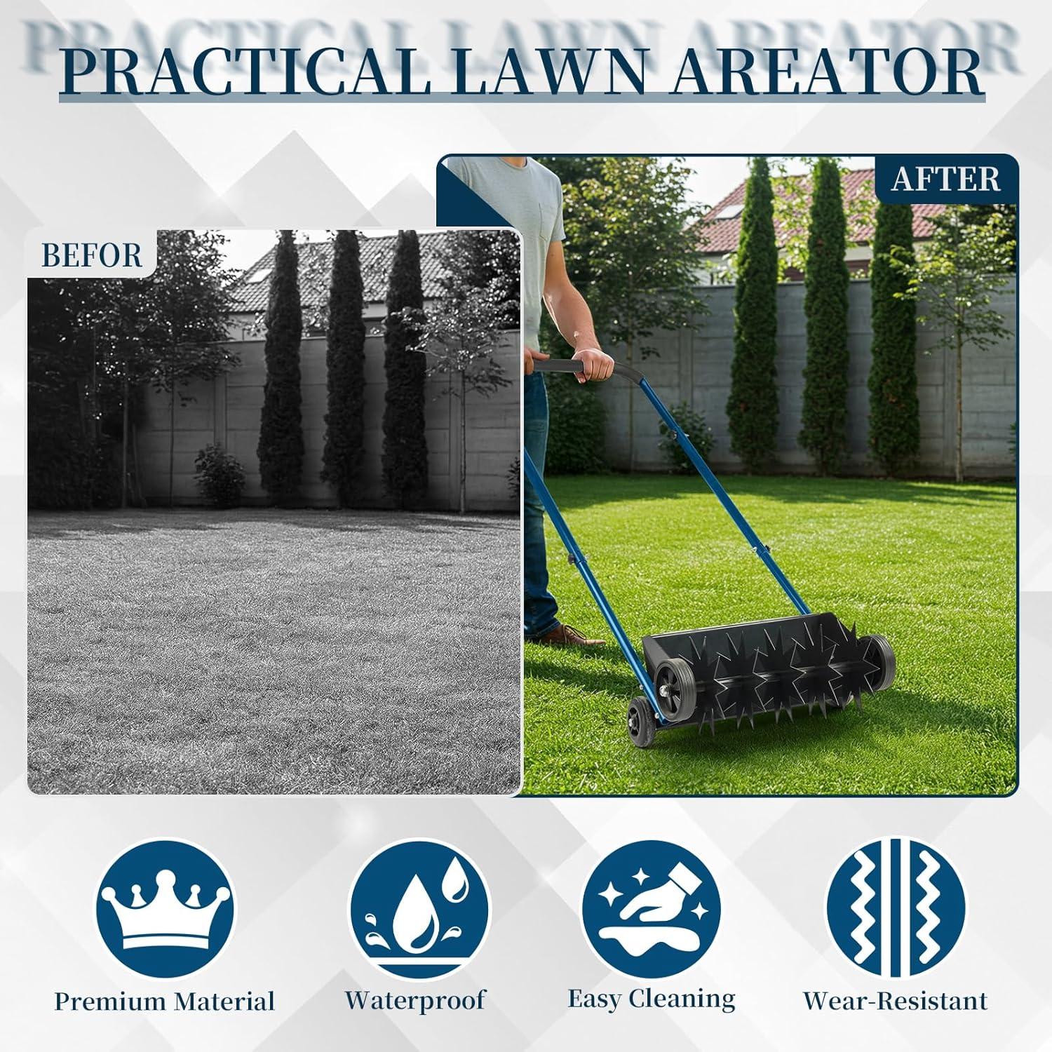 【Heavy Duty Steel Construction】The core aerator is made from extra thick steel with rust-resistant coating for long-lasting performance