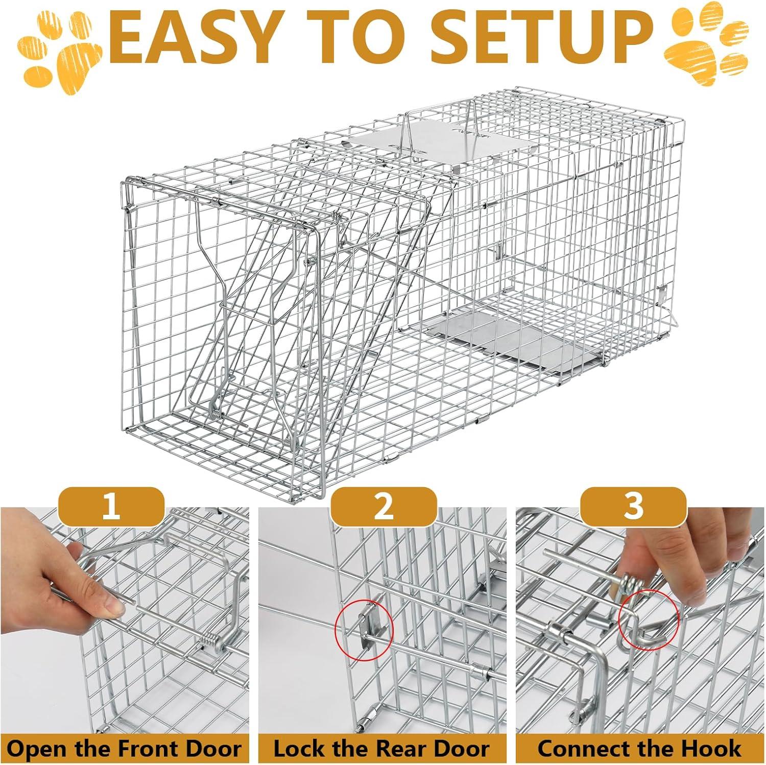 Multi-purpose: This live animal trap cage is designed for trapping raccons, opossums, cats, rabbits, and other similar-sized undesired animals, relocate or rescue streetwise wild animals