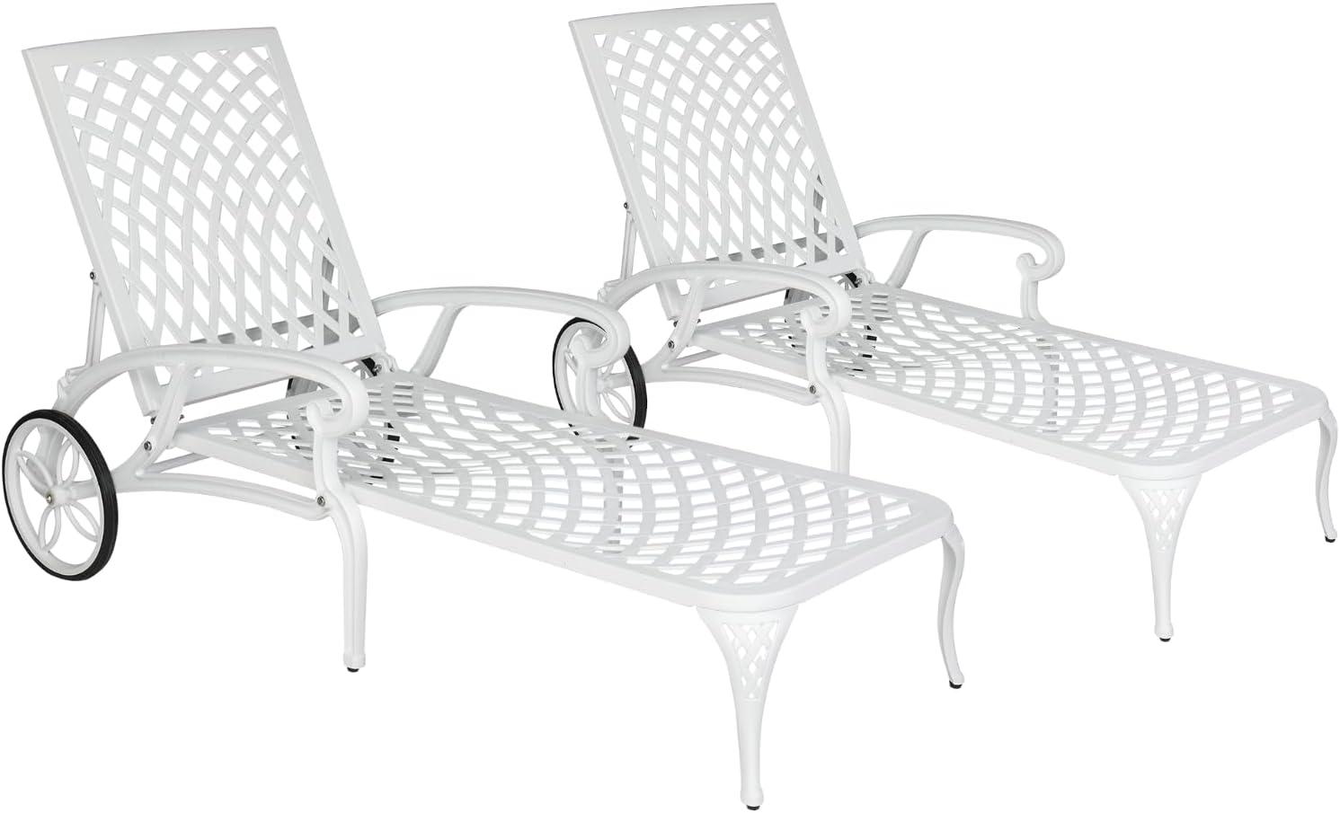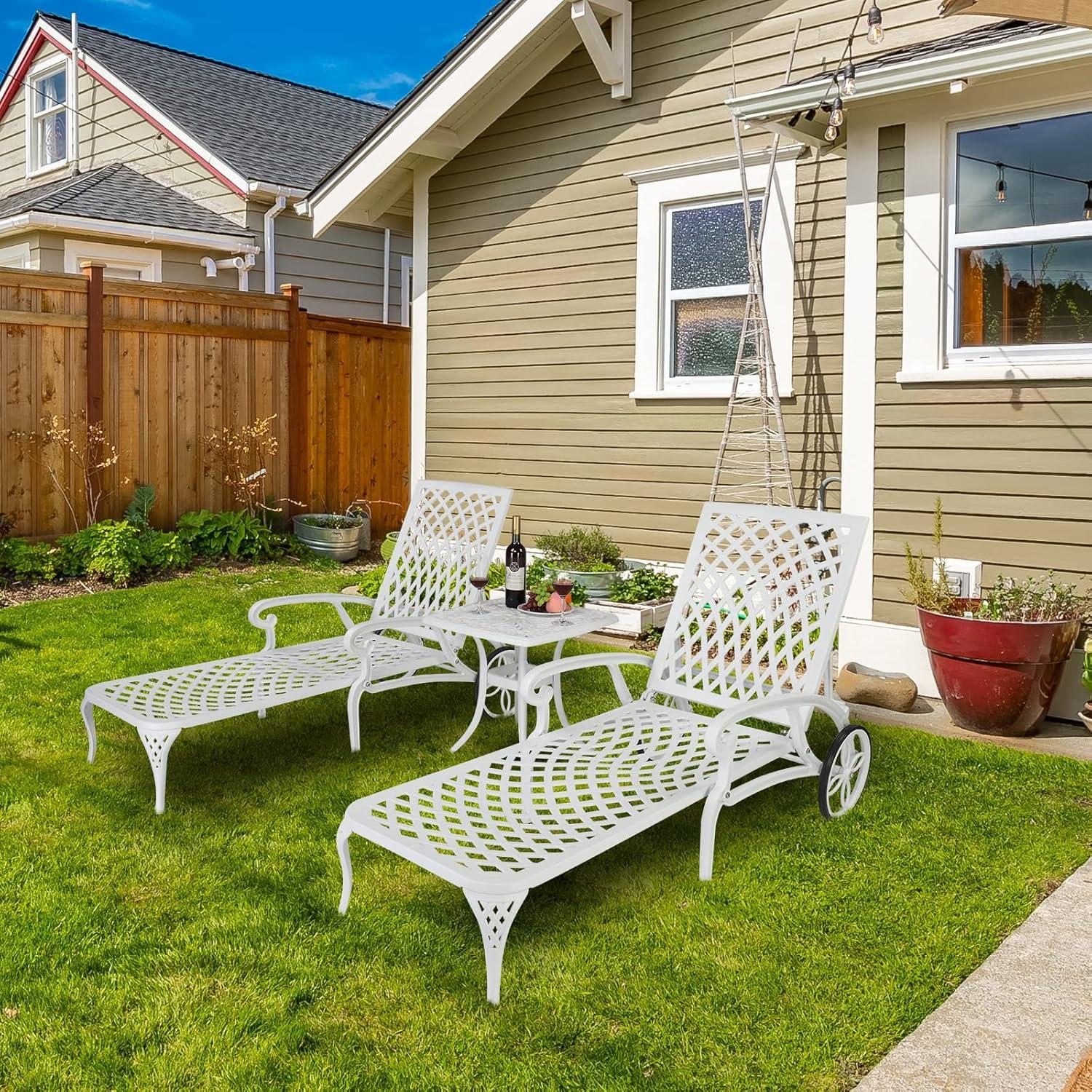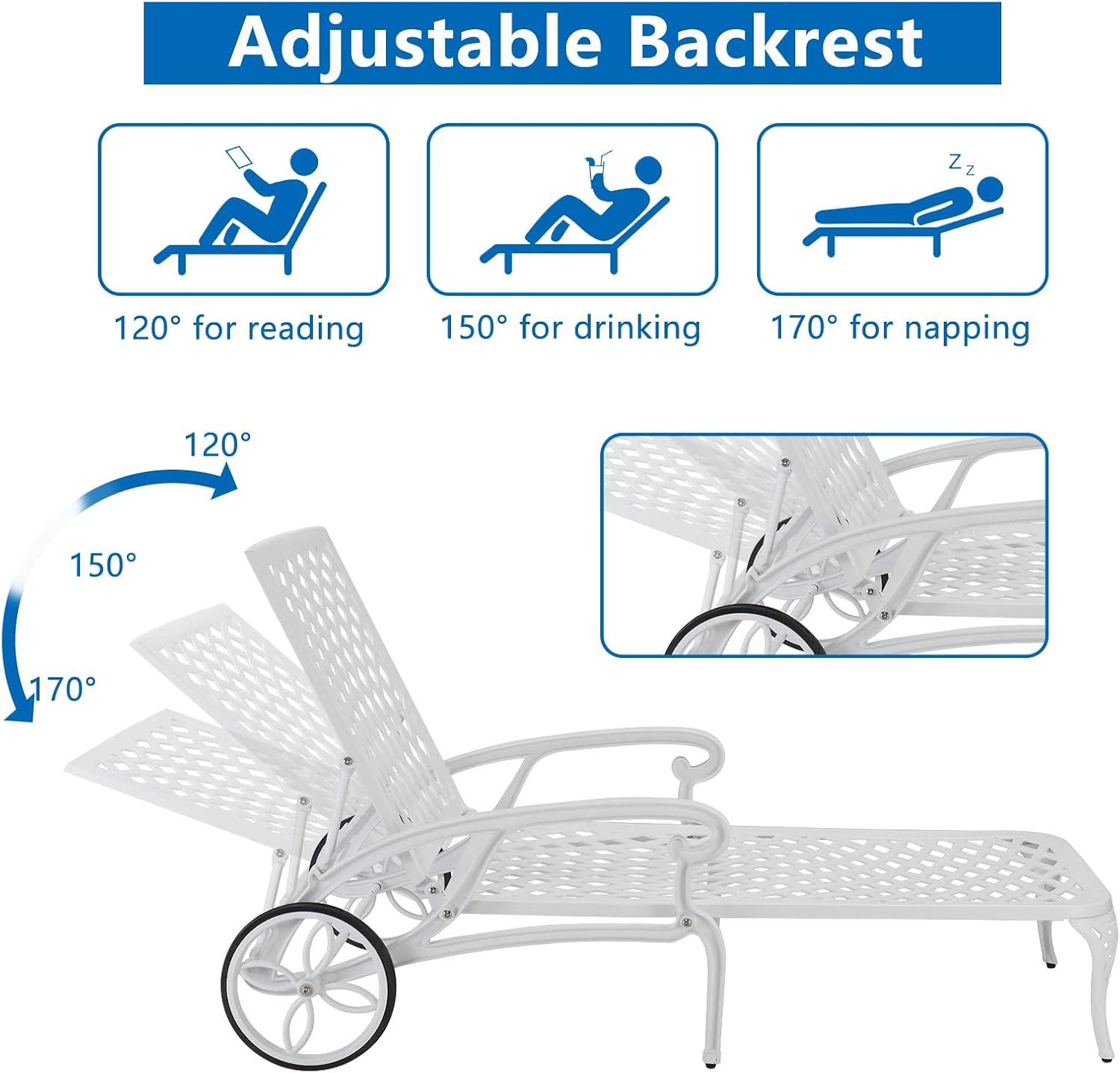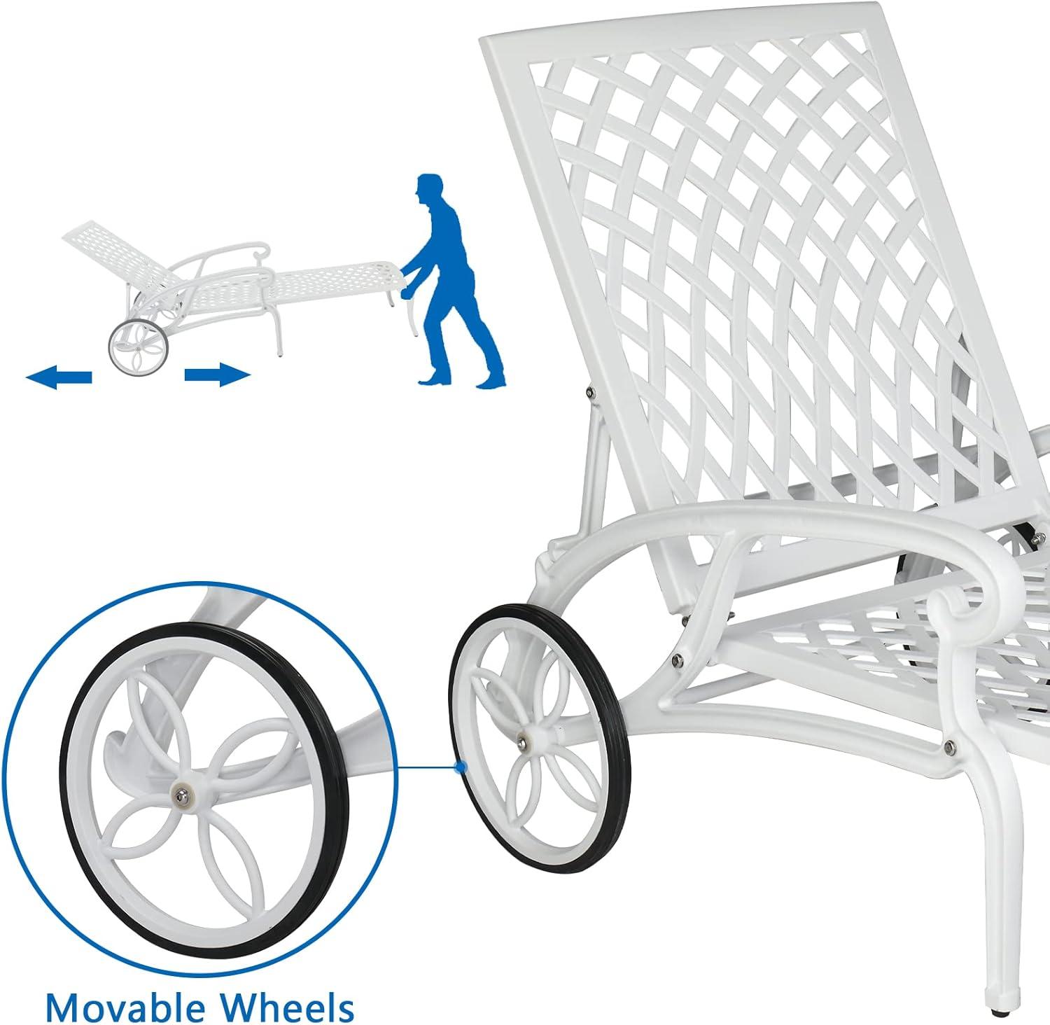 Outvita Lounge Chairs for Outside, Patio Cast Aluminum Recliner with Adjustable Back and Rolling Wheels for Backyard Porch Pool Balcony Deck (Black)(White)