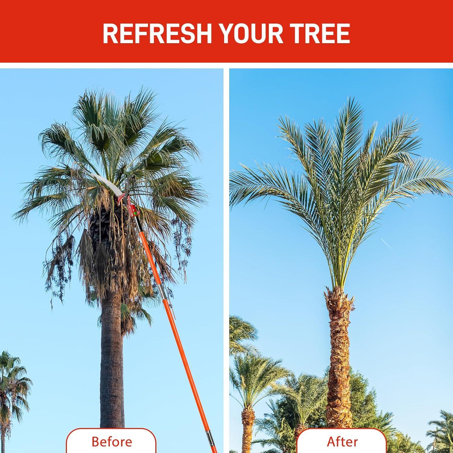 Outvita Manual Pole Saw, 26 Feet Extendable Tree Pruner with Knives and Storage Pocket, Sharp Steel Blade and Scissors High Branches Trimming for Pruning Palms and Shrubs(Orange)(Orange)
