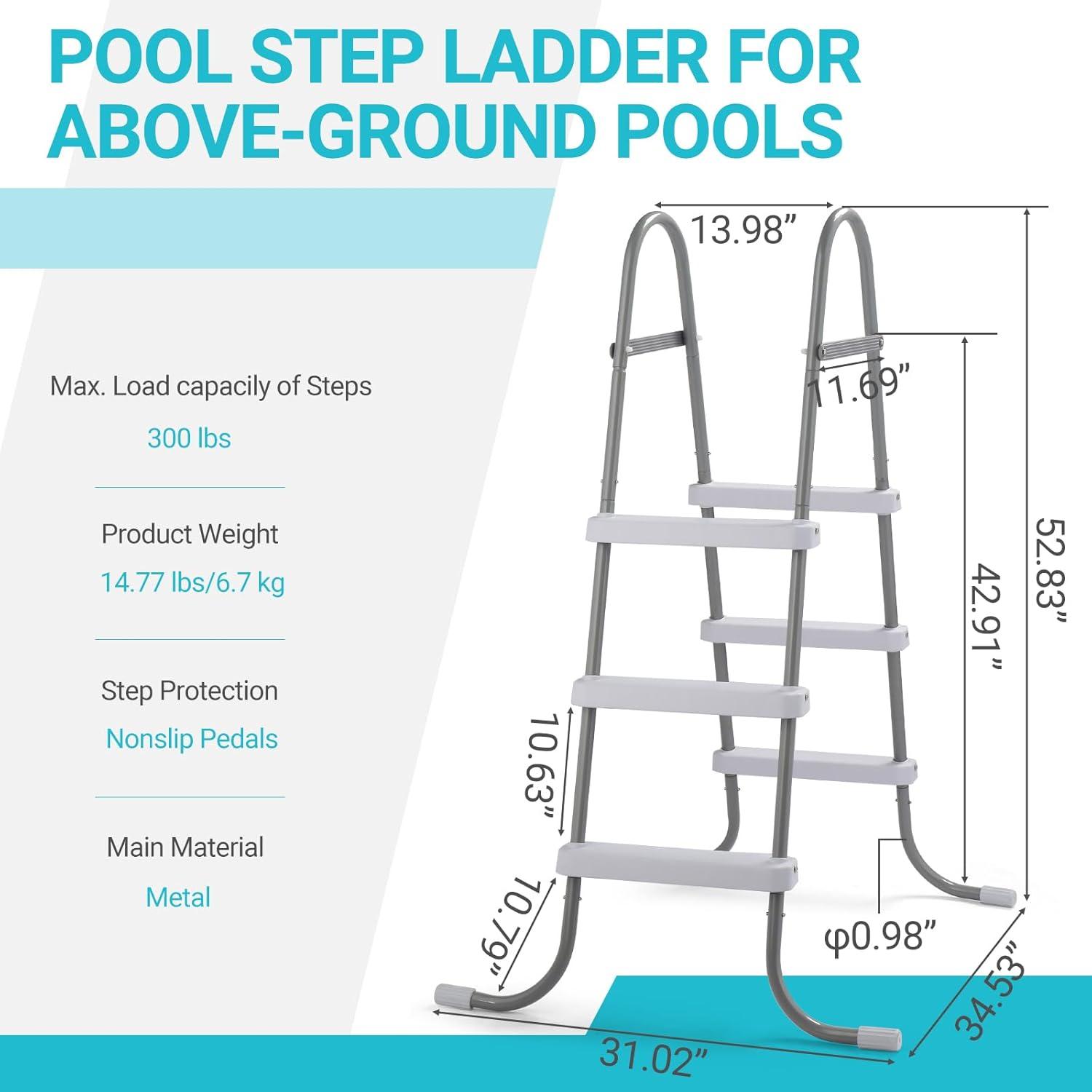 HIGH WEIGHT CAPACITY: With a weight capacity of up to 300 lbs, this swimming pool step is suitable for both children and adults. The thickened steps come with non-slip textured surfaces, ensuring stability with every step you take