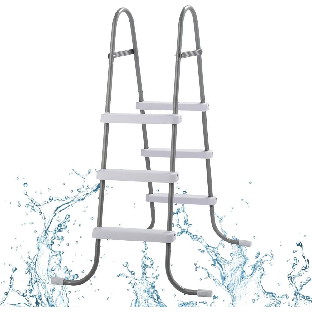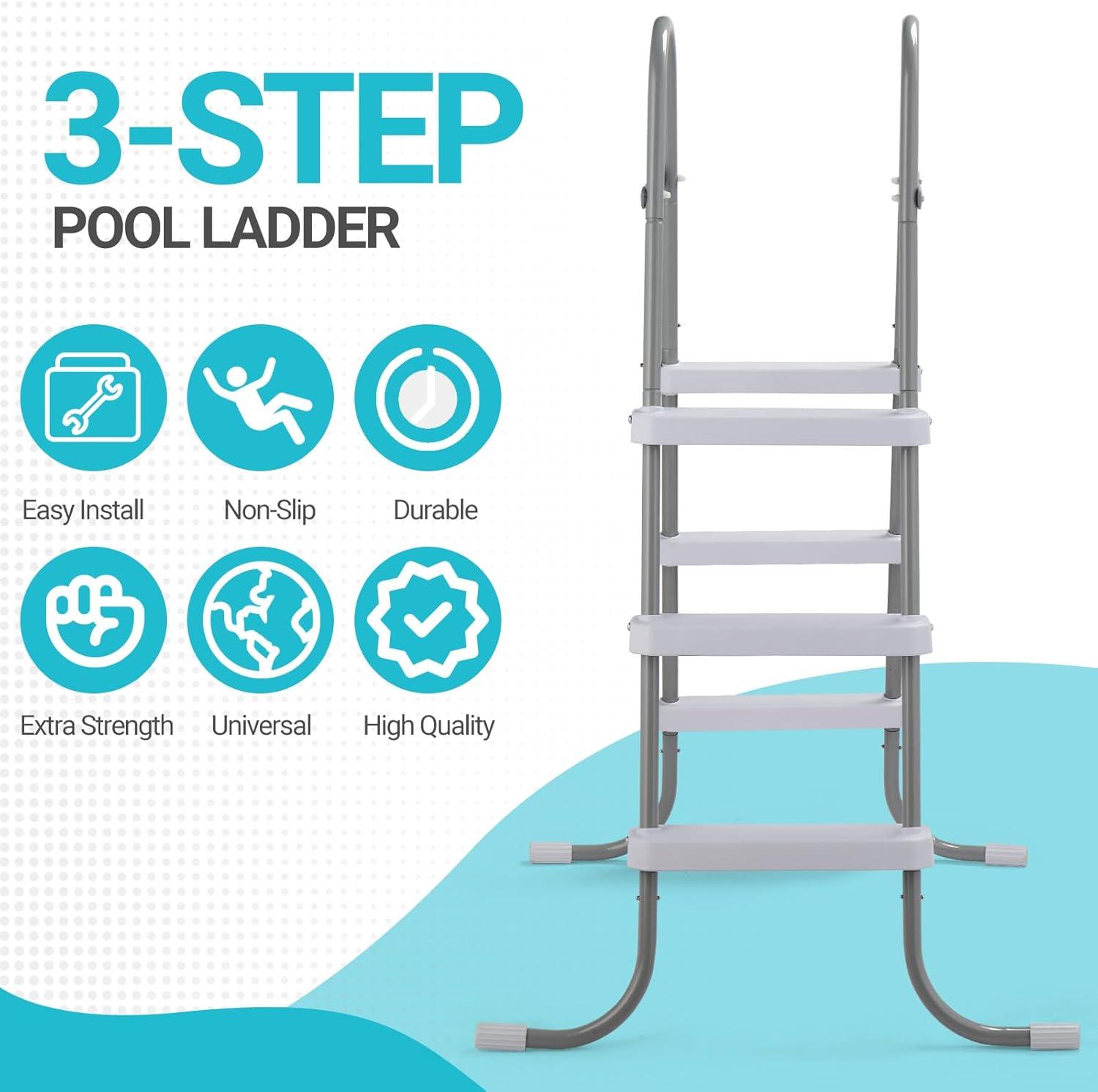 PREMIUM MATERIAL: Above-ground pool ladder that is made with durable coated stainless steel frame construction which ensures durability for years to come. The precise welding makes it ideal for both indoor and outdoor pools