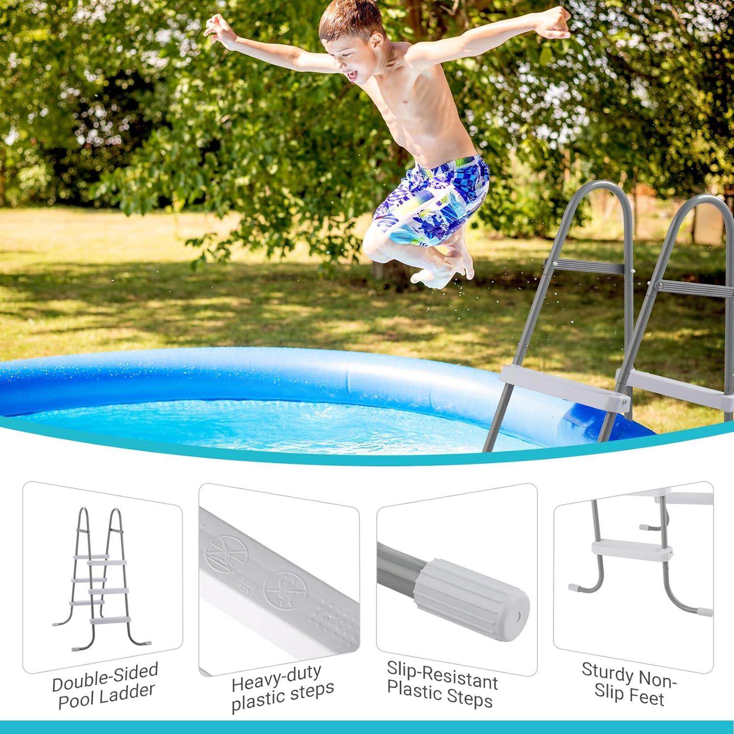 HEAVY-DUTY 2 STEPS: This pool ladder features 2 steps and double handrails on both sides. The steps are designed with textured patterns to ensure secure entry and exit, even underwater, helping prevent slips and accidents