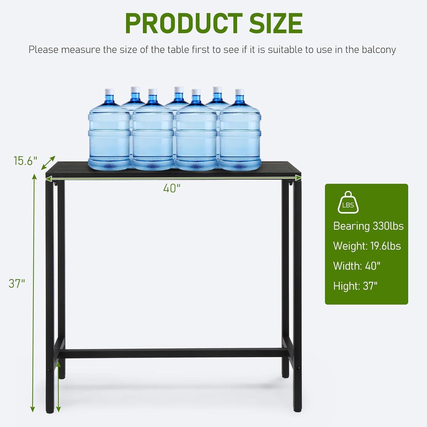 Outvita Outdoor Bar Table, 37" Height Patio Pub Table with Waterproof Frame and Adjustable Foot for Hot Tub, Patio, Backyard, Balcony, Hallway, Bistro Rectangle, Black(40" W - No wheel)