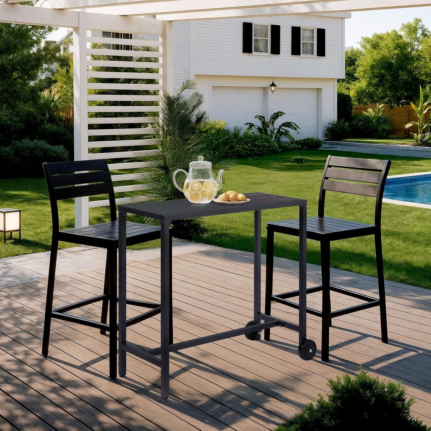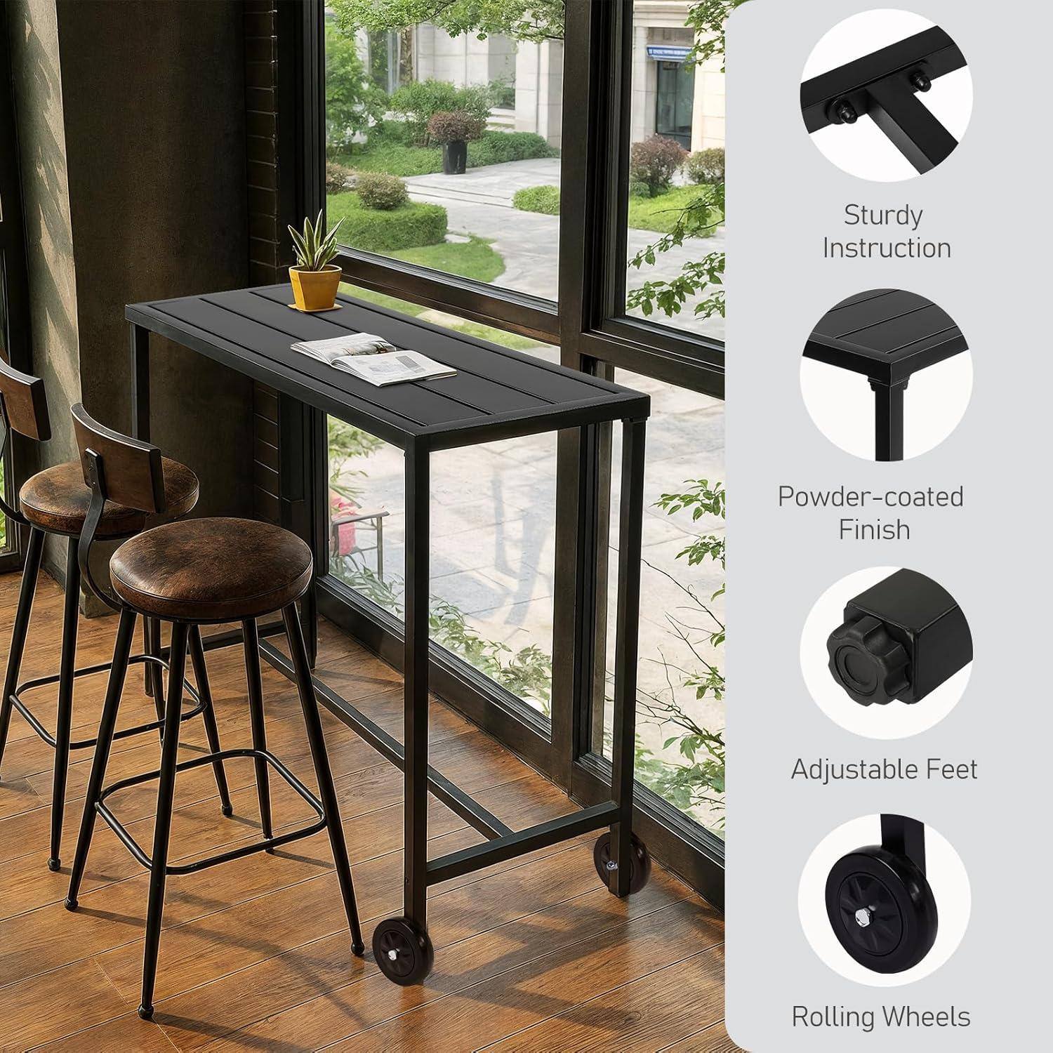 Outvita Outdoor Bar Table, 37" Height Wheeled Patio Pub Table with Waterproof Frame and Adjustable Foot for Hot Tub, Patio, Backyard, Balcony, Hallway, Bistro Rectangle, Black(40" W - With wheel)