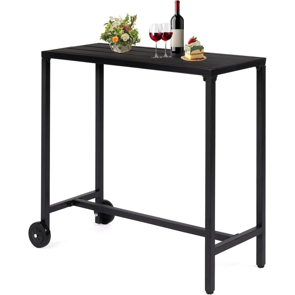imageOutvita Outdoor Bar Table 37quot Height Wheeled Patio Pub Table with Waterproof Frame and Adjustable Foot for Hot Tub Patio Backyard Balcony Hallway Bistro Rectangle Black55 W  With wheel