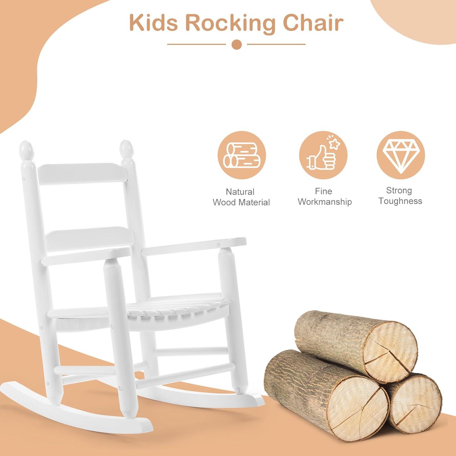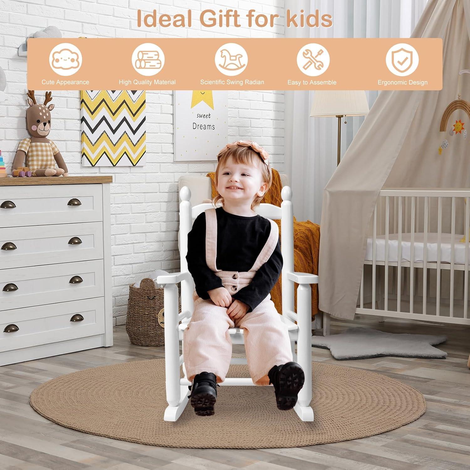 Versatile Usage: This toddler wooden rocking chair is perfect for both indoor and outdoor use. Whether it's on a covered porch, patio, garden, balcony, or inside the living room, these kids rocking chairs for outside provide a comfortable spot for your child