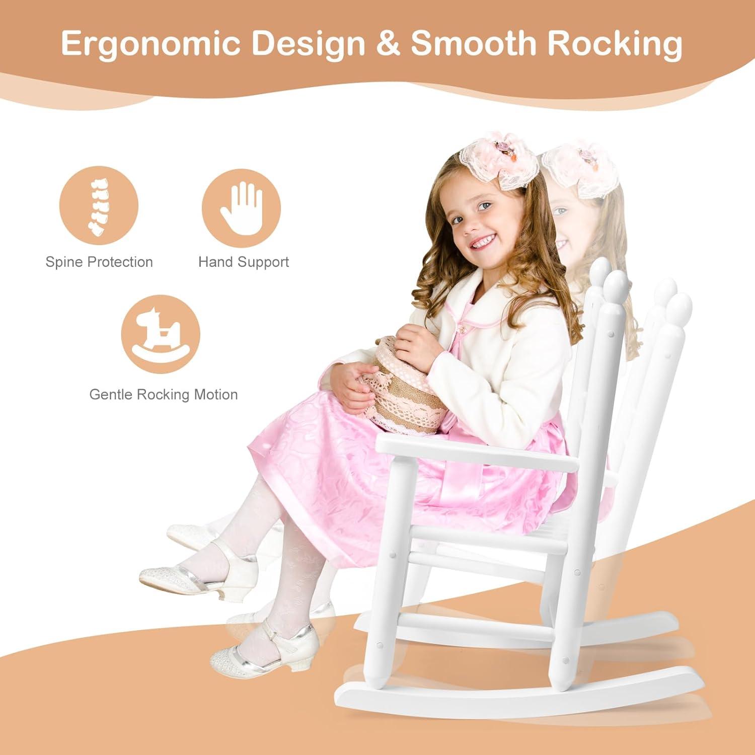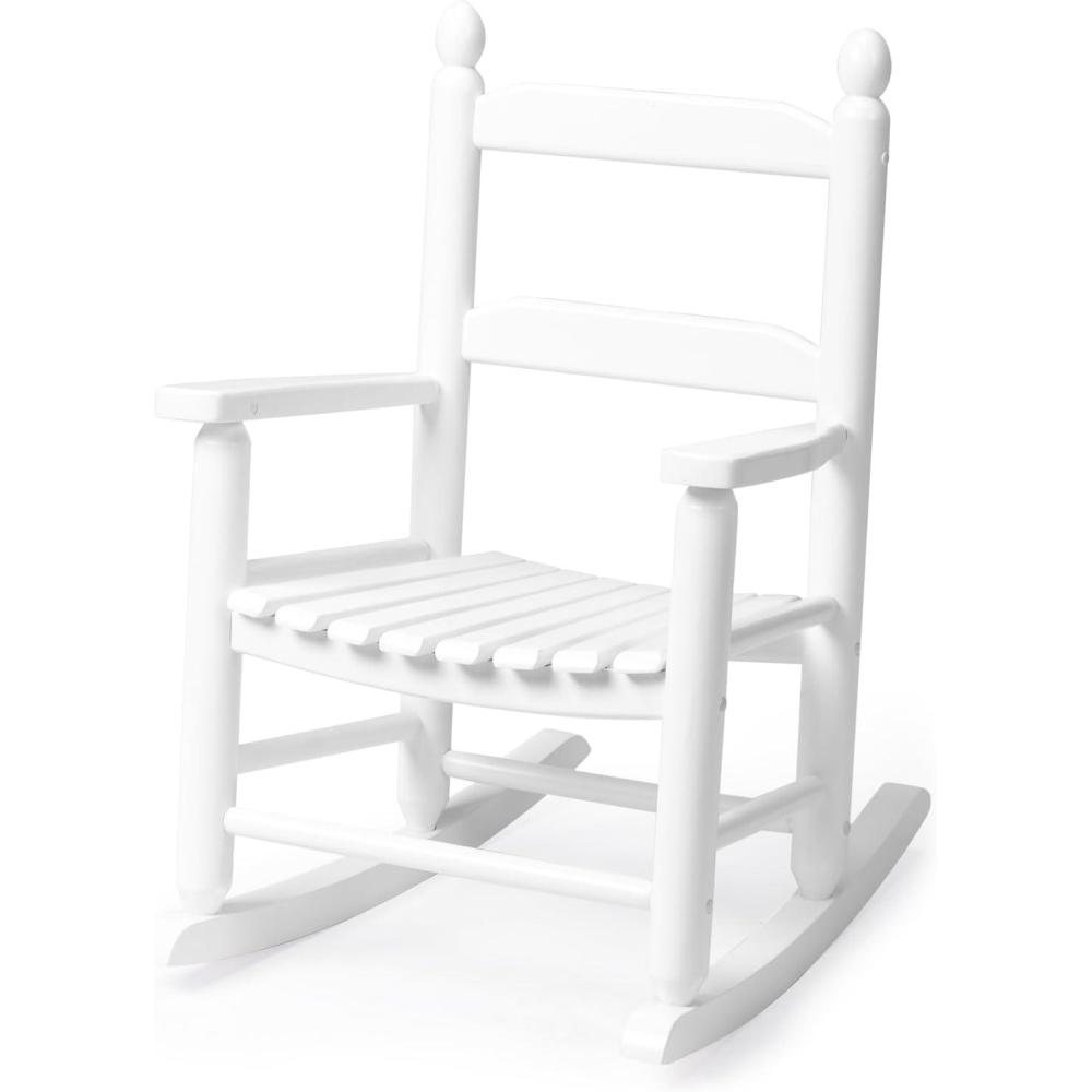imageOutvita Outdoor Childrens Rocking Chair AllWeather Wooden Porch Rocker with High Backrest Ideal for Garden Yard and Balcony Patio Rocking Chair Suitable for Kids Ages 36WhiteWhite