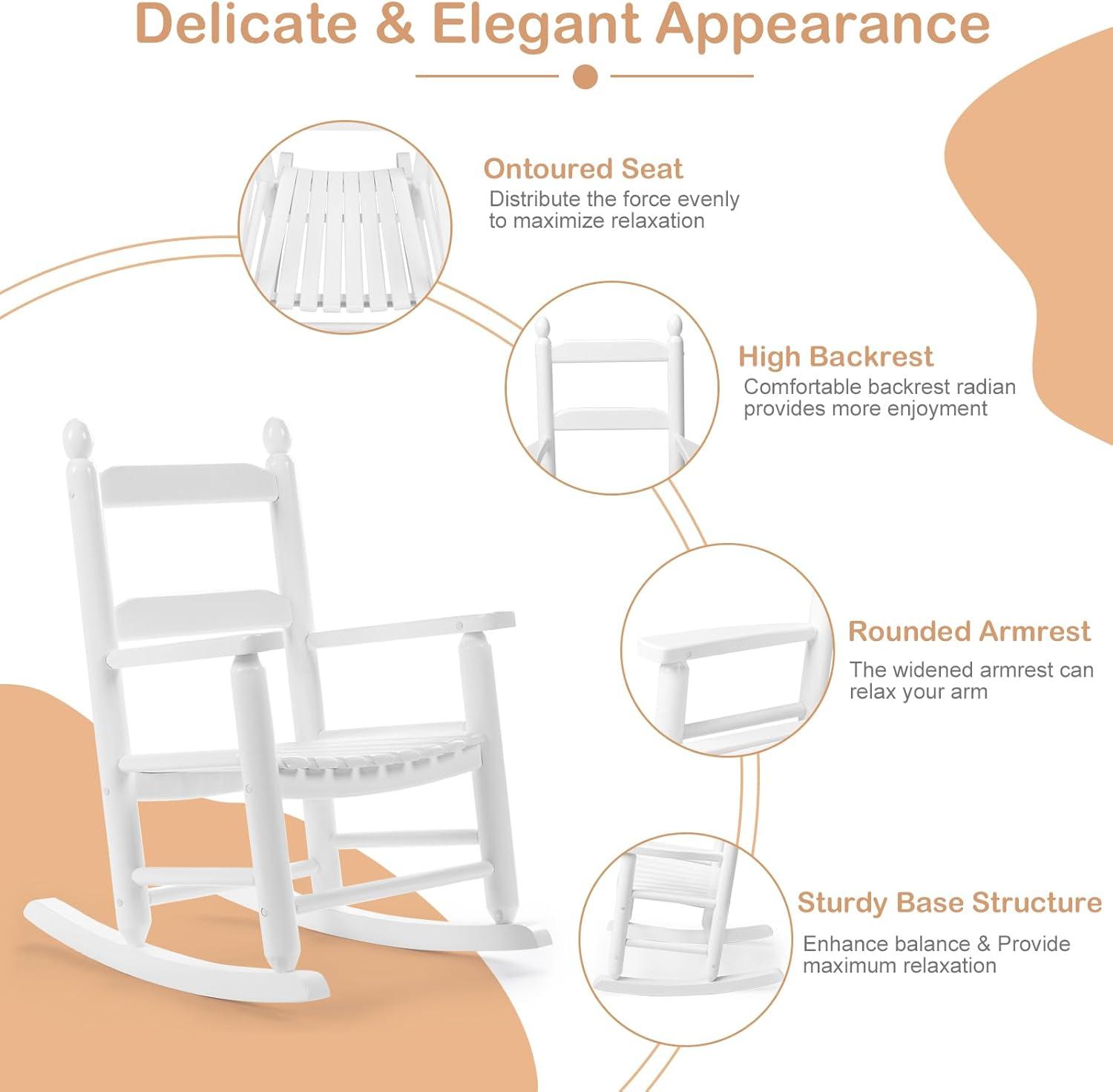 Outvita Outdoor Children's Rocking Chair, All-Weather Wooden Porch Rocker with High Backrest, Ideal for Garden, Yard, and Balcony, Patio Rocking Chair Suitable for Kids Ages 3-6(White)(White)